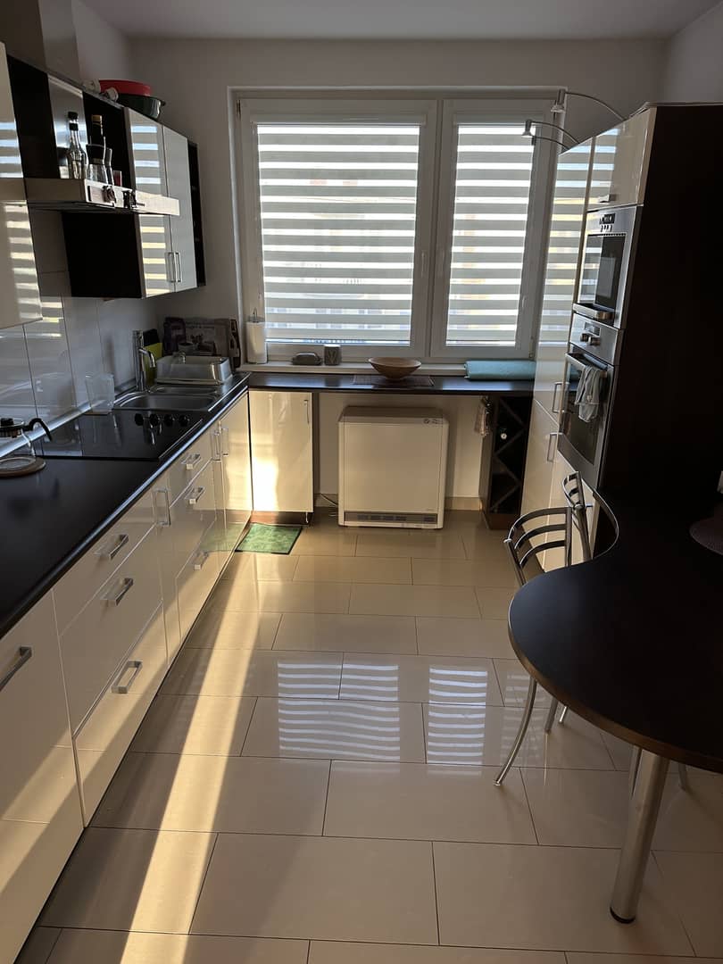 W cenie mieszkania pozostaje zabudowa kuchenna ze sprzętem AGD ( całość w zabudowie: lodówka, zmywarka, płyta grzewcza, piekarnik, mikrofalówka, okap).