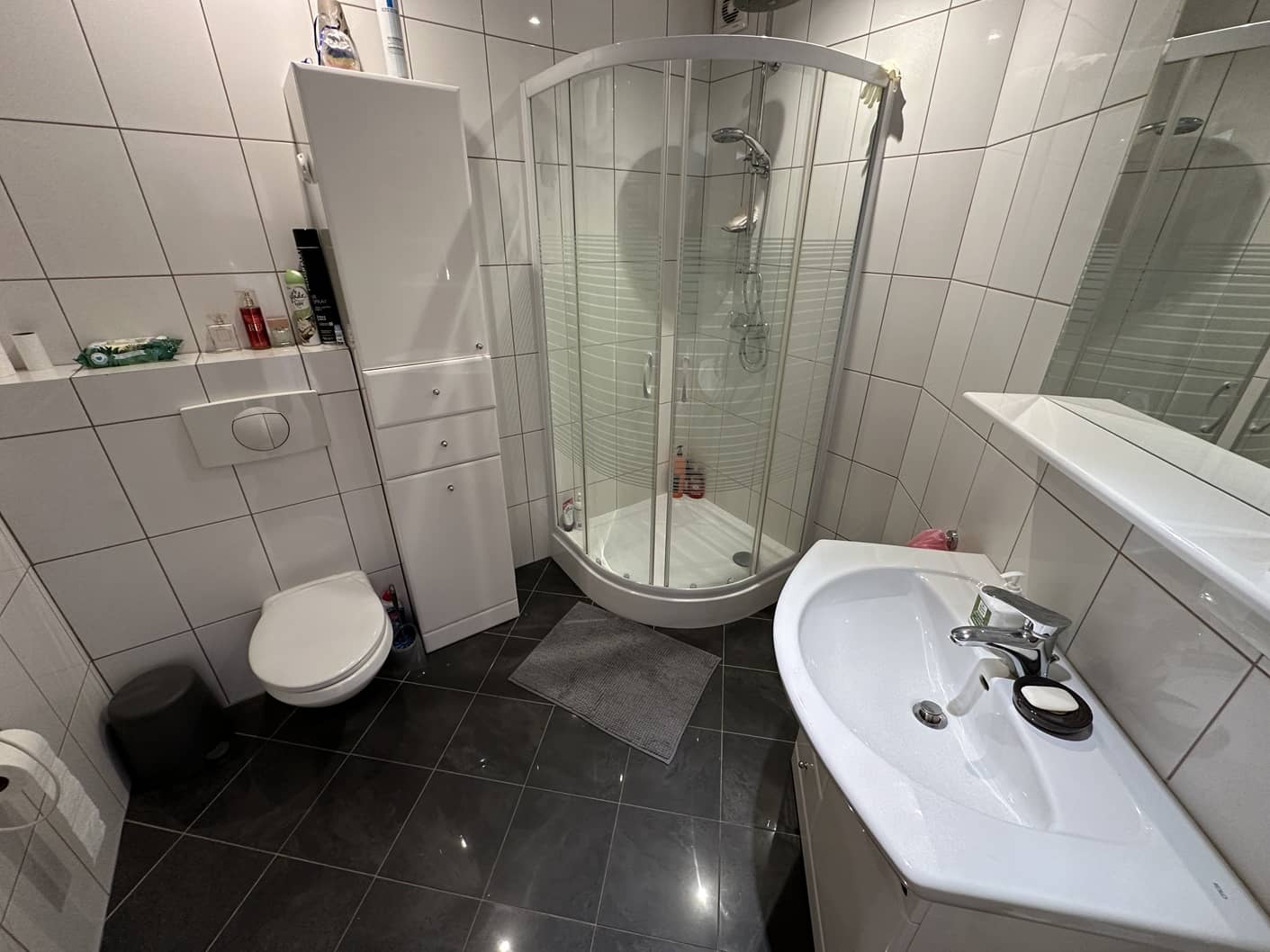 - łazienka z WC i kabiną prysznicową 5m2
