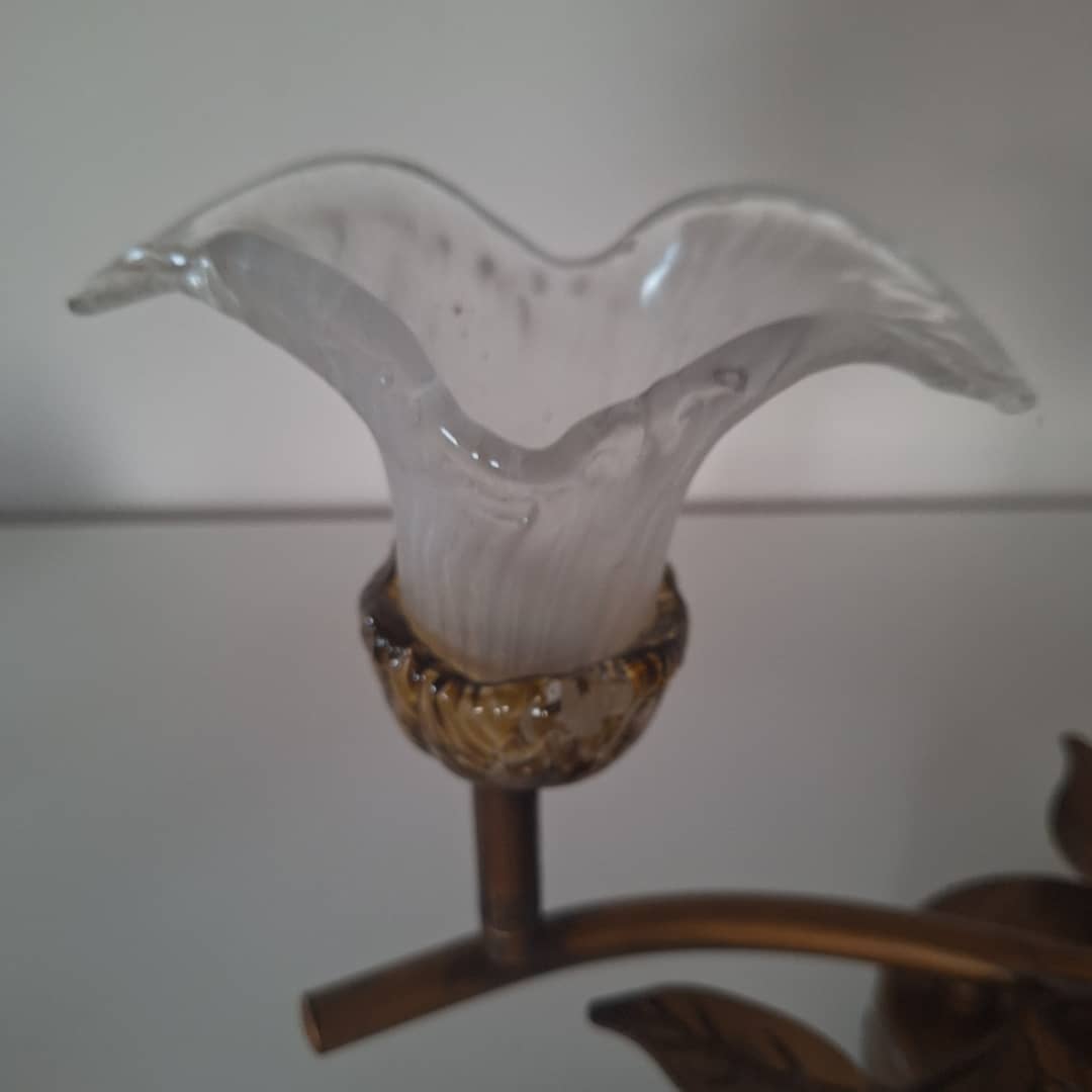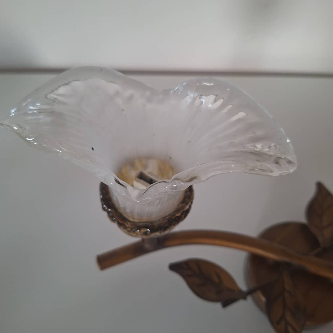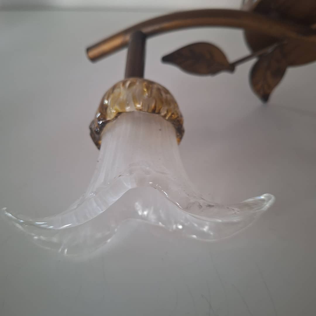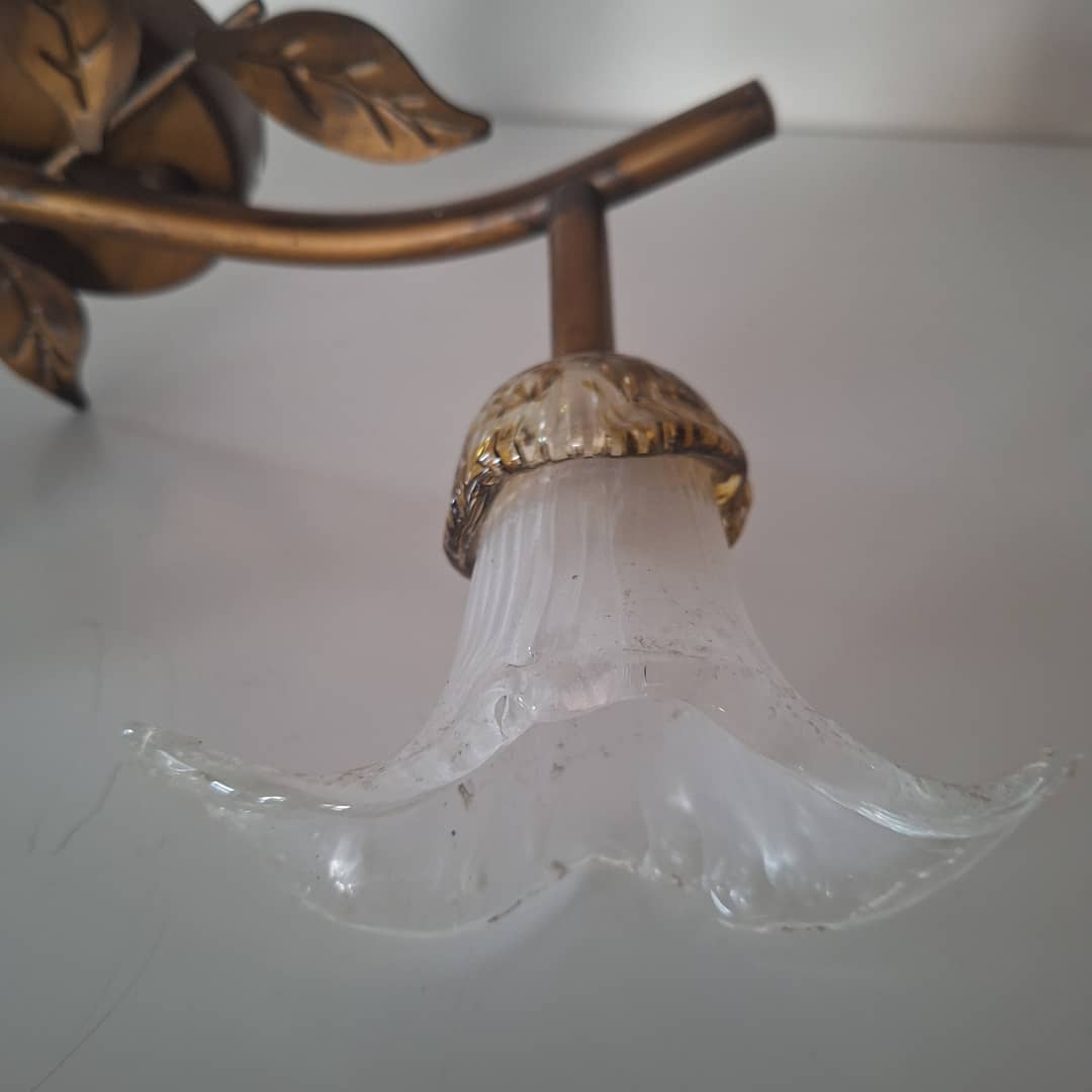 Kinkiet ścienny lub sufitowy, metal i szkło, bardzo ładny. Długość 33 cm, klosze są ruchome, regulowane .Możliwy dowóz lub wysyłka. Cena 50 zł.