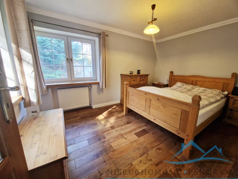 Największym atutem nieruchomości jest niewątpliwie jej lokalizacja – budynek posadowiony jest na wzgórzu, tuż przy lesie. Posesja ogrodzona, zagospodarowana z pięknymi, starymi drzewami i krzewami. Z balkonu oraz z działki można delektować się szumem Potoku Podgórnej co stanowi gratkę dla miłośników przyrody. Na działce, tuż przy lesie znajduje się urocza ławeczka z widokiem na Potok. Na posesji znajduje się również wiata, przeznaczona pod rodzinne przyjęcia oraz pomieszczenie gospodarcze, które służyć może jako garaż. Działka na której znajduje się budynek objęta jest MPZP i daje możliwość prowadzenia nieuciążliwych usług z zakresu turystyki. Parametry określone w MPZP pozwalają na rozbudowę – istnieje możliwość wybudowania domku pod inwestycję, np. wynajem krótkoterminowy, który świetnie się w tej miejscowości sprawdzi.