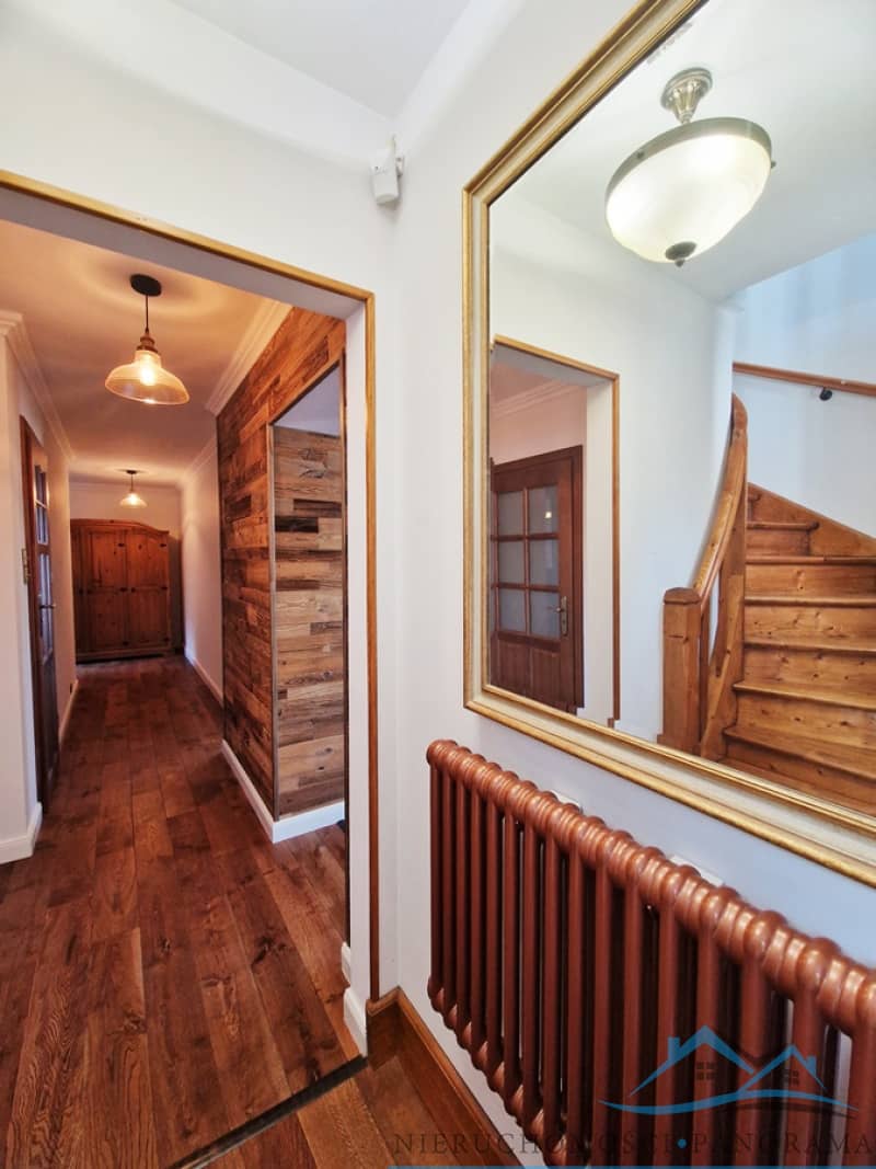 Dodatkowo strych, który można przekształcić na kolejny pokój oraz przyziemie budynku o powierzchni około 76 m2, na które składa się pralnia i kotłownia oraz kilka pomieszczeń – idealne do zaadoptowania np. na apartament pod wynajem – posiada bezpośrednie wyjście na ogród.
