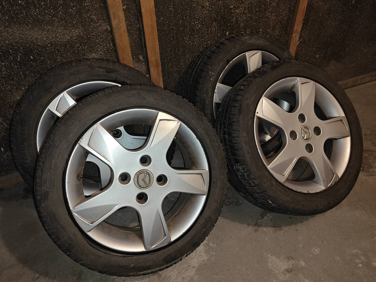 Sprzedam komplet 4 kół letnich 195/50 R15 - opony Riken Road Performance + oryginalne felgi Mazdy