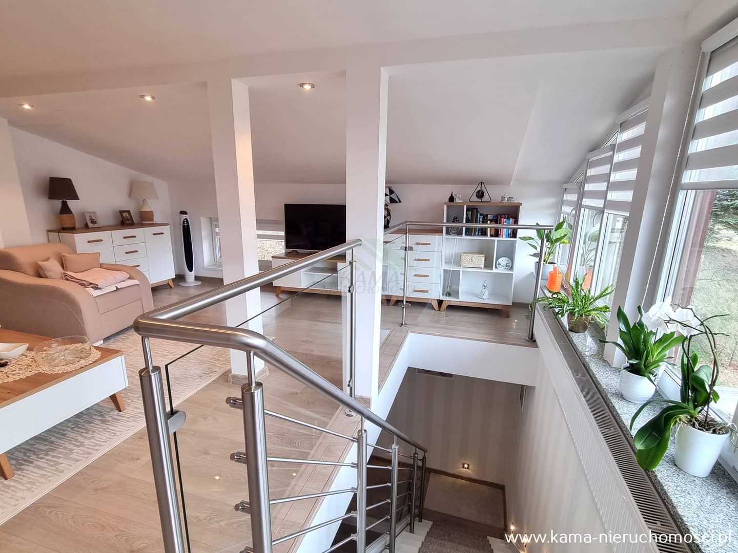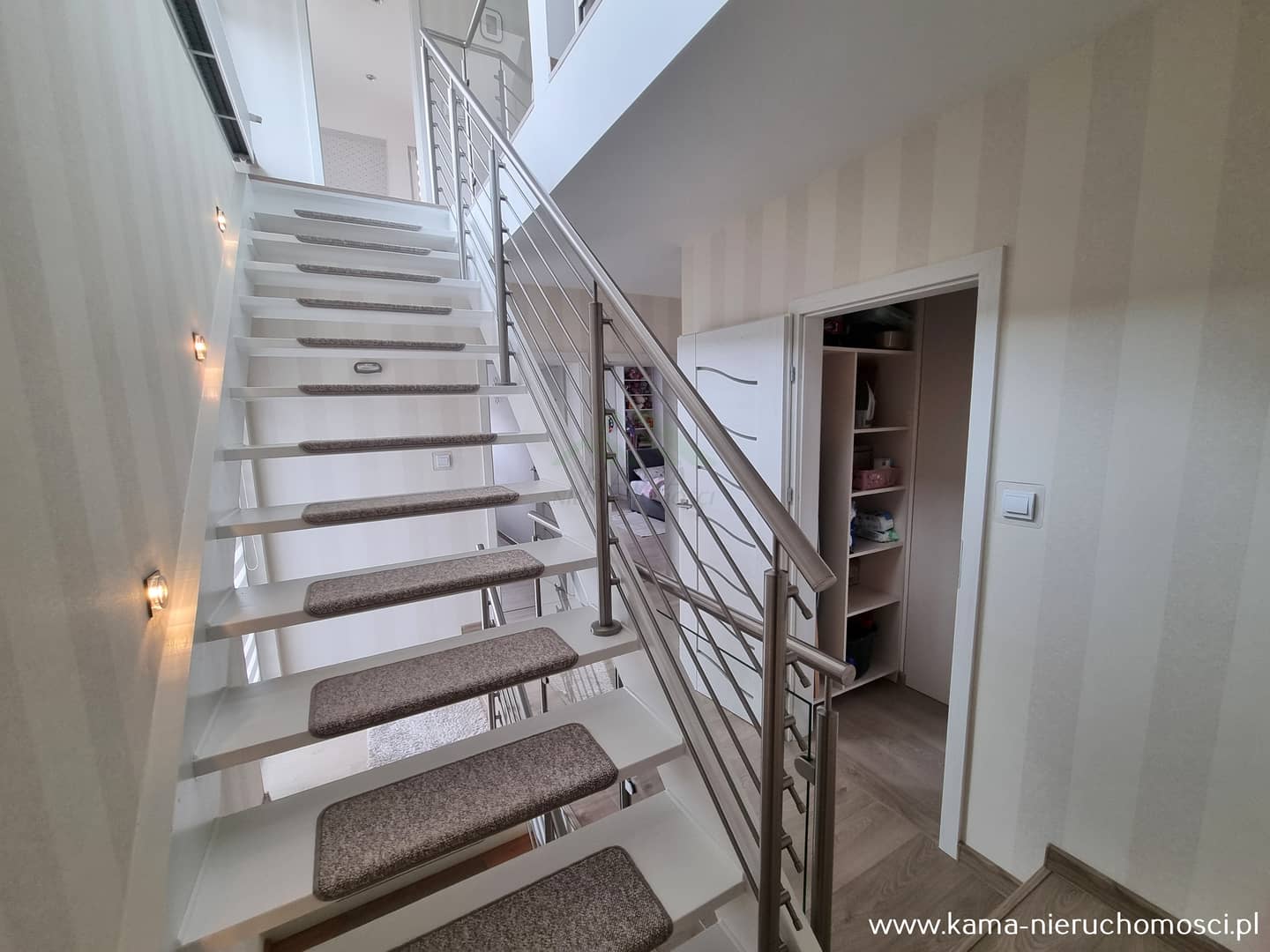 Na piętra prowadzą nas nowe podświetlone schody z metalowymi poręczami i świetnie przeszklonymi balustradami.