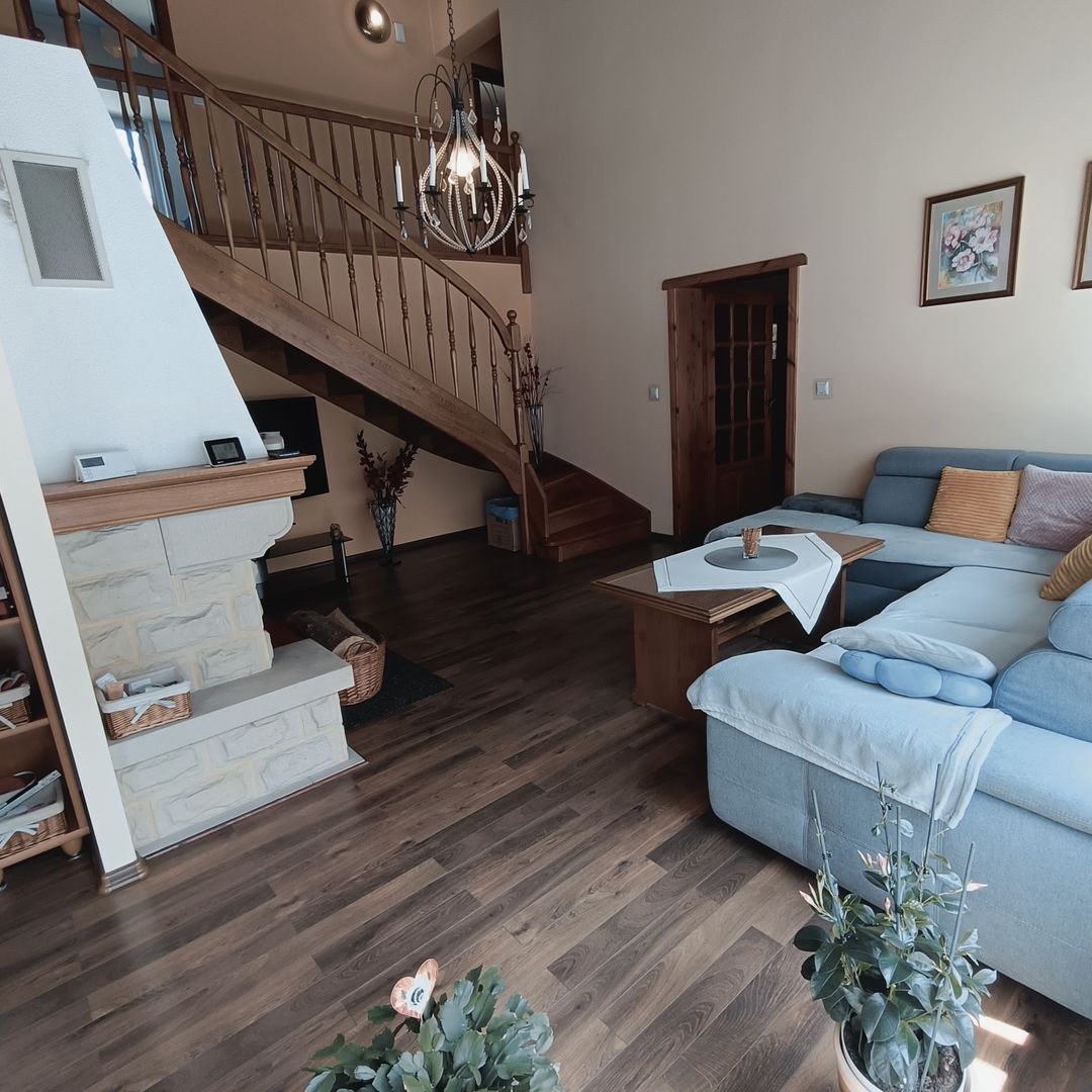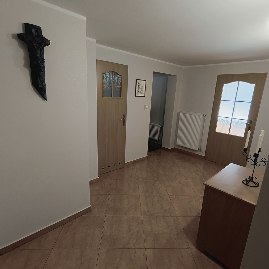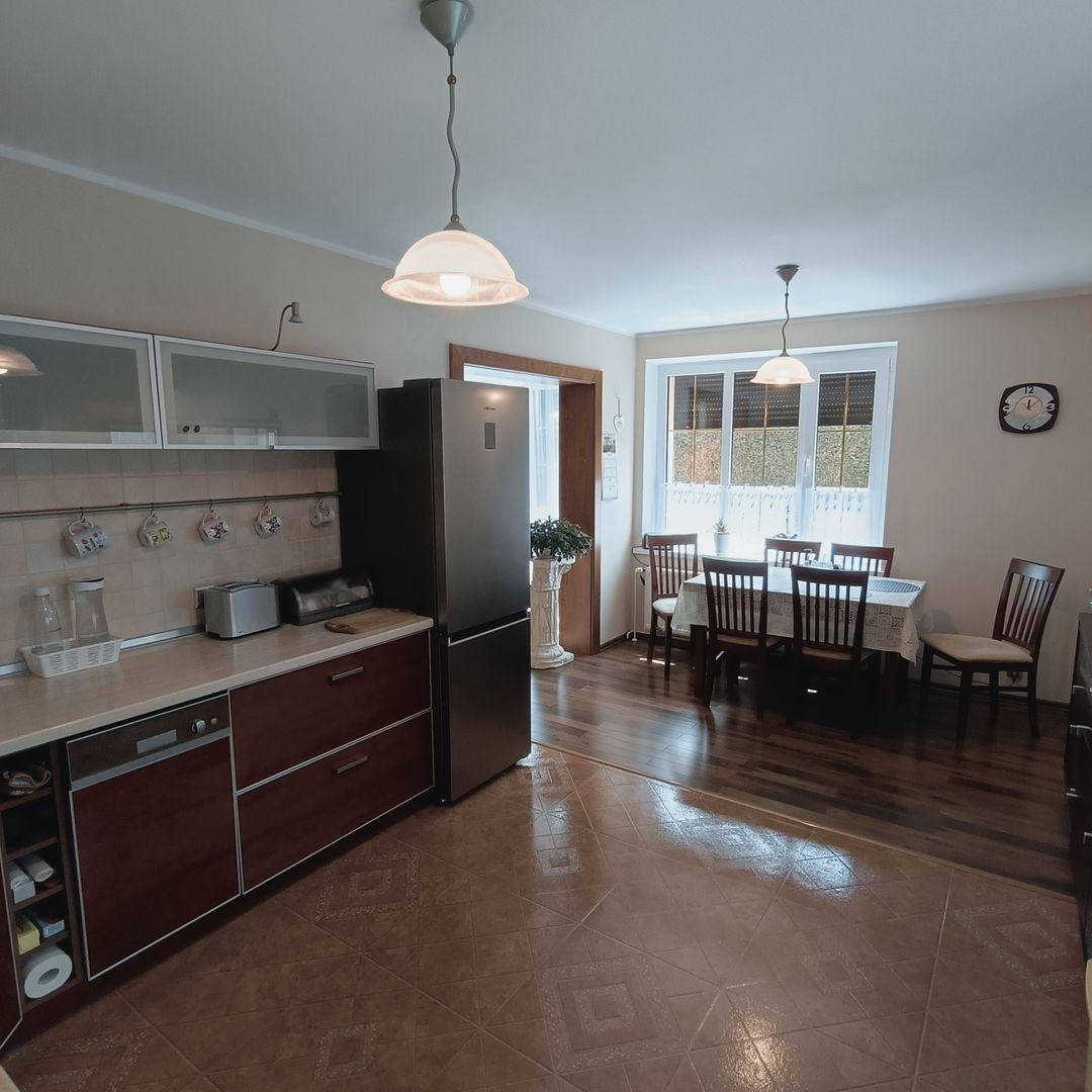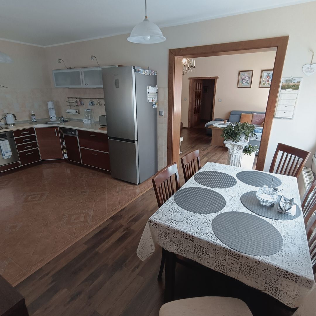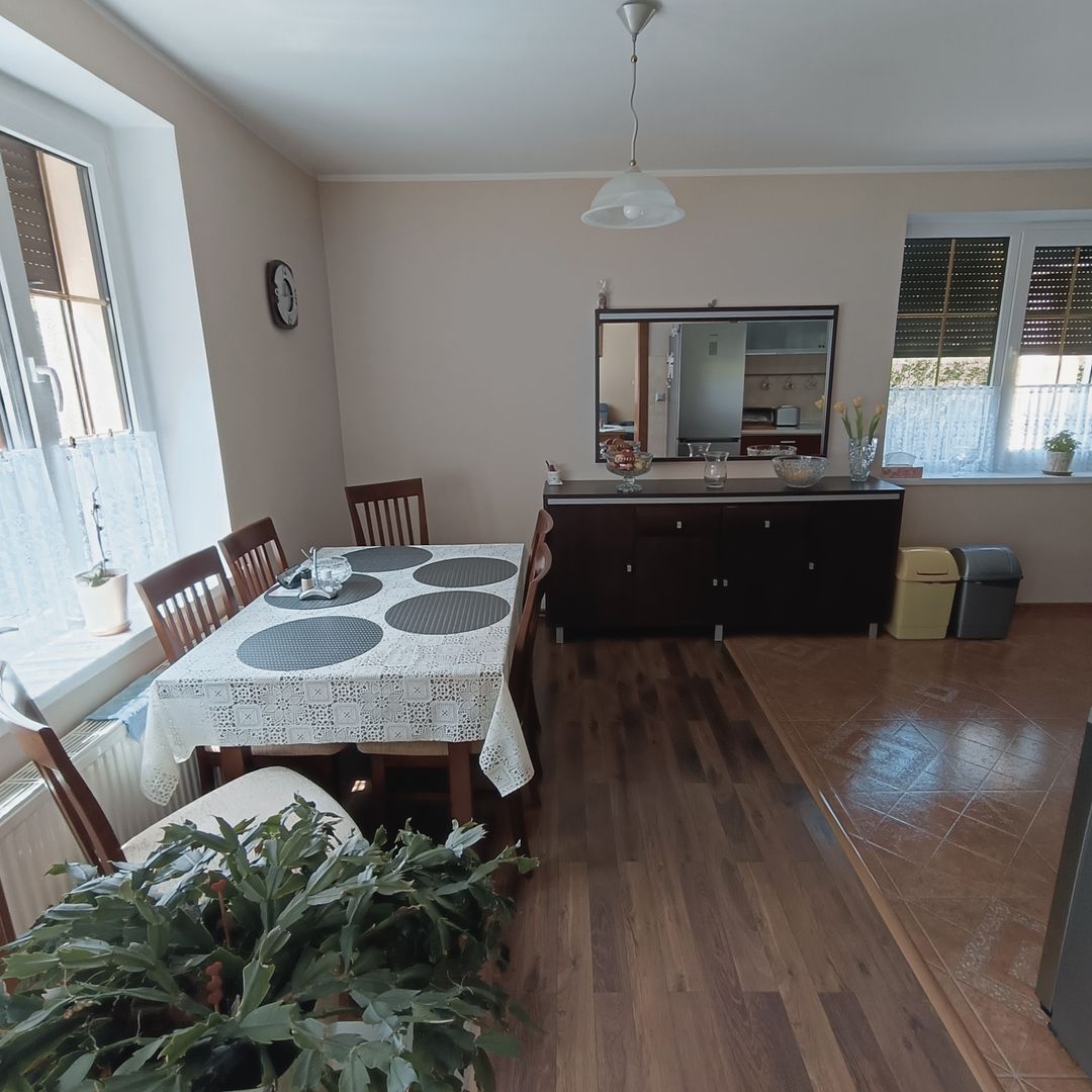 Komfortowy dom wolnostojący położony w ładnej części Cieplic, dzielnicy Jeleniej Góry. Budowany w latach 80 po kapitalnym remoncie w 2017 roku. Ocieplony styropianem 10 cm lambda 0,31 wykończony tynkiem żywicznym. Dach pokryty blachą dachówką. Posadowiony na działce o powierzchni 550 m2. Powierzchnia całkowita domu wynosi 200 m2 w tym użytkowa 187m2 i obejmuje w parterze wiatrołap, hall, 2 pokoje, 2 garderoby, ( w tym jedna z oknem, może pełnić funkcję dodatkowego pokoju )oraz łazienka z natryskiem. Ponadto przejście do otwartego salonu, połączonego pięknymi, drewnianymi schodami z piętrem domu, co daje doskonałą przestrzeń i urok. W salonie znajduje się również kominek, wyjście na nowy taras i przejście do jadalni połączonej z wyposażoną i umeblowaną kuchnią. Przy kuchni znajduje się spiżarnia z kuchnią letnią i wyjściem bezpośrednio na ogród. Na piętrze znajdują się 3 sypialnie w tym jedna z balkonem, również po remoncie, oraz poddaszowym schowkiem, druga z dużą zabudowaną szafą, łazienka z wanną oraz loggia. Po kapitalnym remoncie w 2017 roku zostały wymienione wszystkie instalacje elektryczna, wodno - kanalizacyjna, grzewcza, nowe podłogi, położone nowe legary, ocieplenie, płyty OSB i na to panele, w pozostałej części płytki . Wymienione drzwi, okna pcv z elektrycznymi roletami antywłamaniowymi na parterze i regulowanymi ręcznie na piętrze. Ogrzewanie piecem gazowym, dwufunkcyjnym, 1 rocznym. Media to prąd, woda, gaz ,kanalizacja. Dom gustownie urządzony, wykończony ładnie elementami drewnianymi co dodaje ogromnego uroku i przestrzeni. Teren ogrodzony z brana na pilota, wyłożony kostką podjazd, w pozostałej części pięknie zagospodarowany trawnik oraz murowany grill na ogrodzie. Przed budynkiem drewniana wiata na 2 samochody, pomieszczenie na narzędzia ogrodowe, część na drewno oraz pomieszczenie na rowery i mały warsztacik. Doskonała lokalizacja w pobliżu sklepów, marketów, przychodni, przystanku MZK, szkoły. Dom w doskonałej formie, do zamieszkania bez jakichkolwiek dodatkowych nakładów finansowych. Atrakcyjny z uwagi na stan wykończenia, lokalizację oraz komfort jaki posiada. Cena 1250 000 zł podlega negocjacji, serdecznie polem i zapraszam na prezentację Nieruchomości Rychlewski