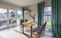 wyjście na taras z widokiem na Śnieżkę – idealne miejsce na poranną kawę i wieczorny relaks,