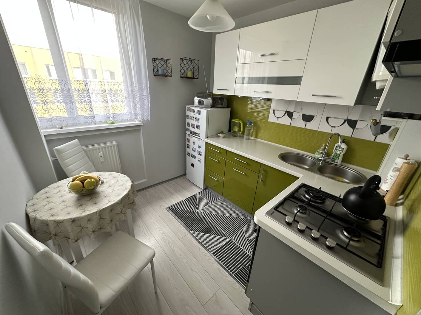 W cenie mieszkania pozostaje: kompletna zabudowa kuchenna ze sprzętem AGD, szafa w zabudowie w przedpokoju.