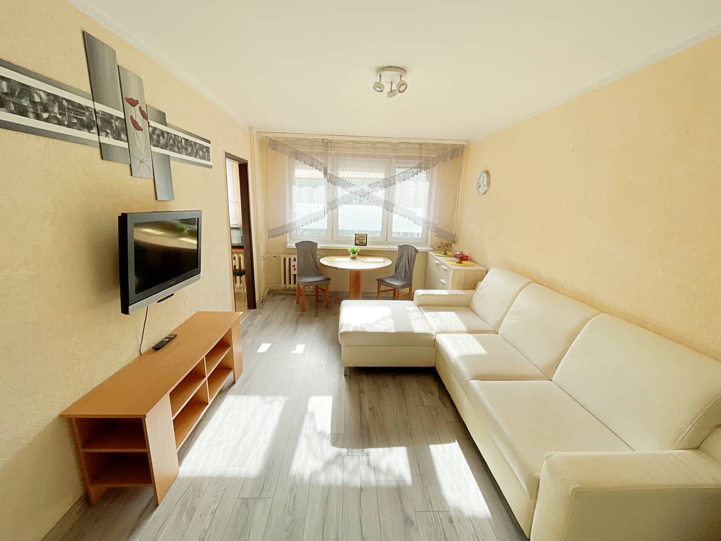 Mieszkanie środkowe, przytulne i słoneczne z balkonem na stronę południową, zadbane i w pełni umeblowane, na podłogach panele oraz kafelki, okna pcv, wymieniono także piony wodne, oraz częściowo instalację elektryczną, gotowe do wprowadzenia.