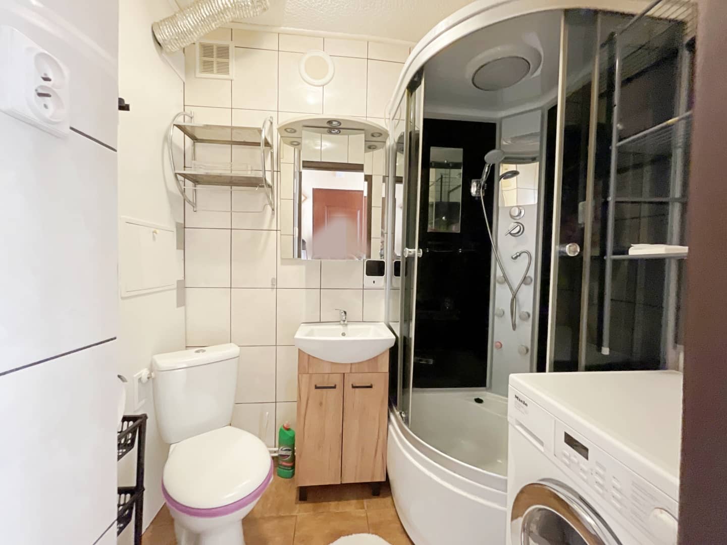 - łazienka z kabiną prysznicową i toaletą