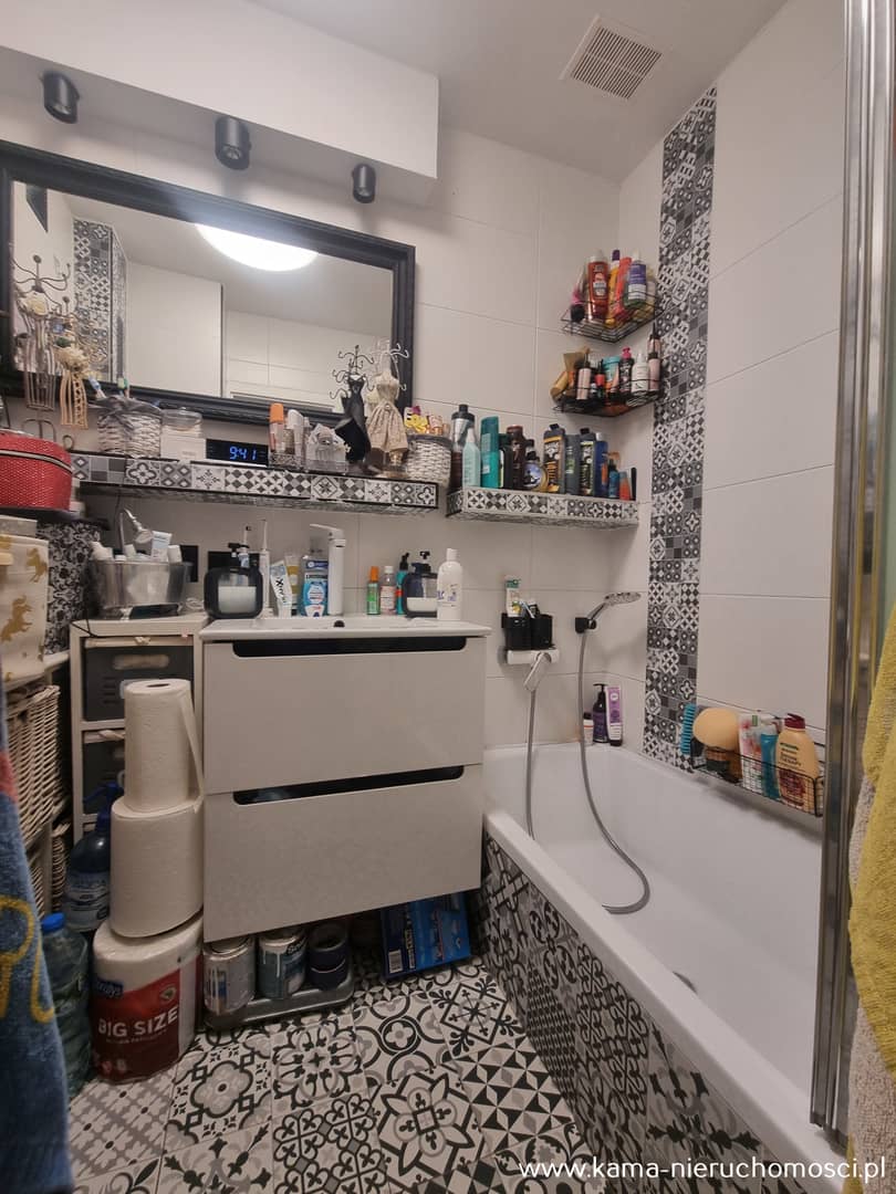 - łazienka wyposażona w wannę, idealna na relaks po ciężkim dniu,
