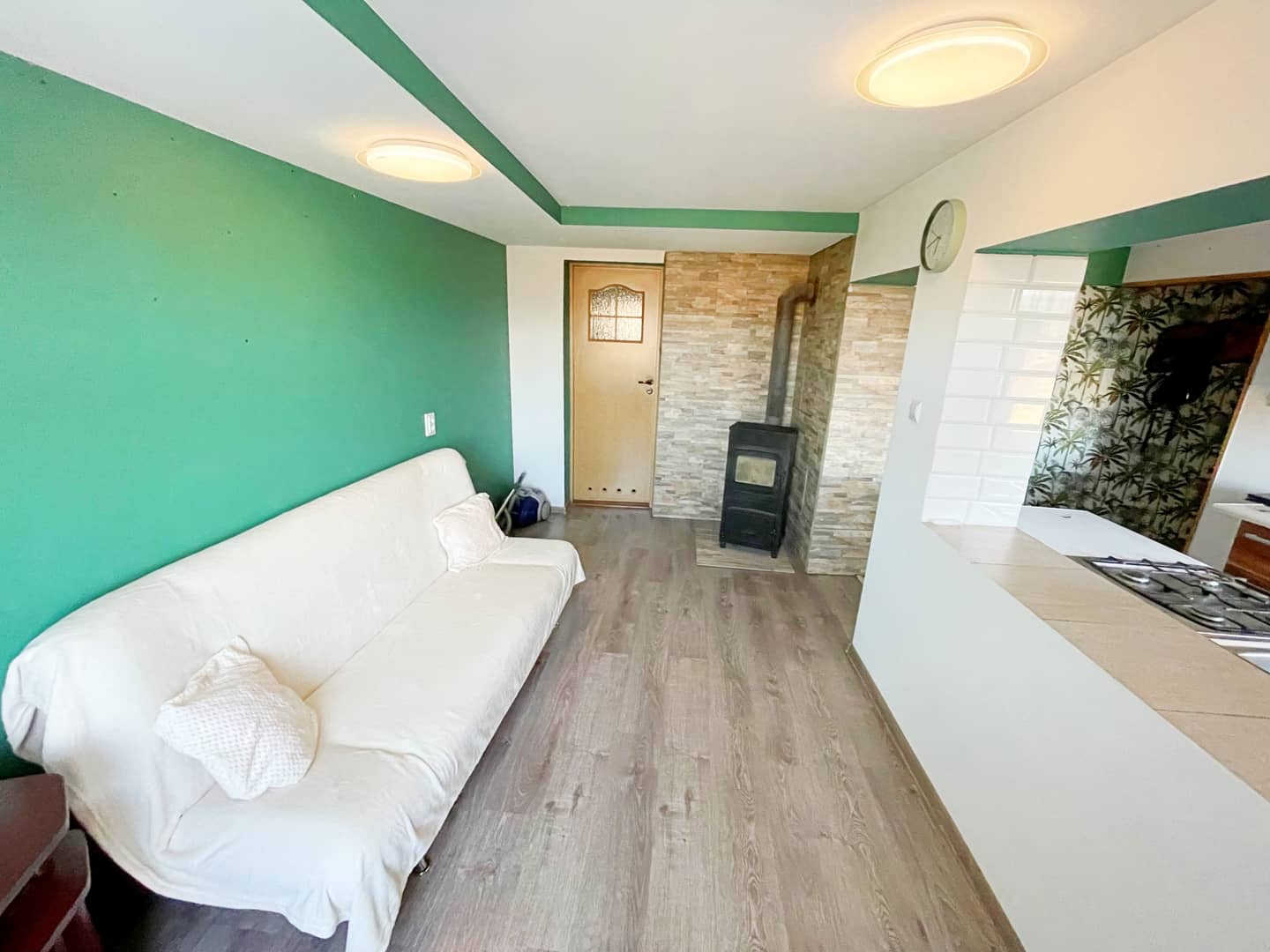 Ogrzewanie kominkiem typu koza oraz czynnym piecem kaflowym, możliwość wykonania ogrzewania gazowego, ciepła woda z bojlera elektrycznego.