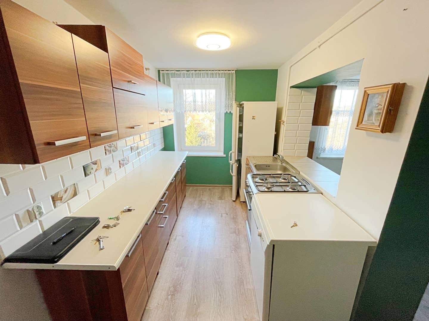 Mieszkanie zadbane, w dobrym stanie, okna PCV, na podłogach panele oraz kafle. W cenie meble kuchenne, na życzenie możliwość pozostawienia części pozostałego umeblowania.