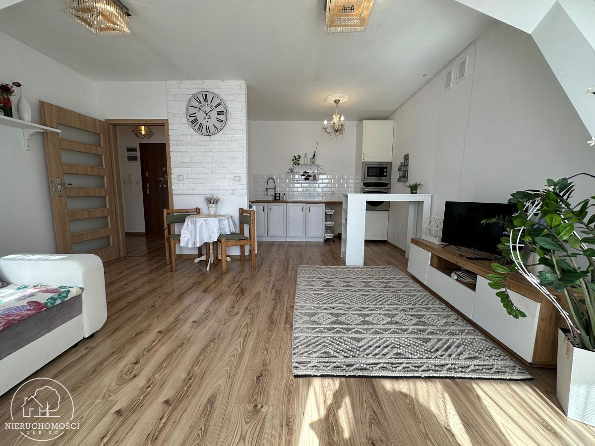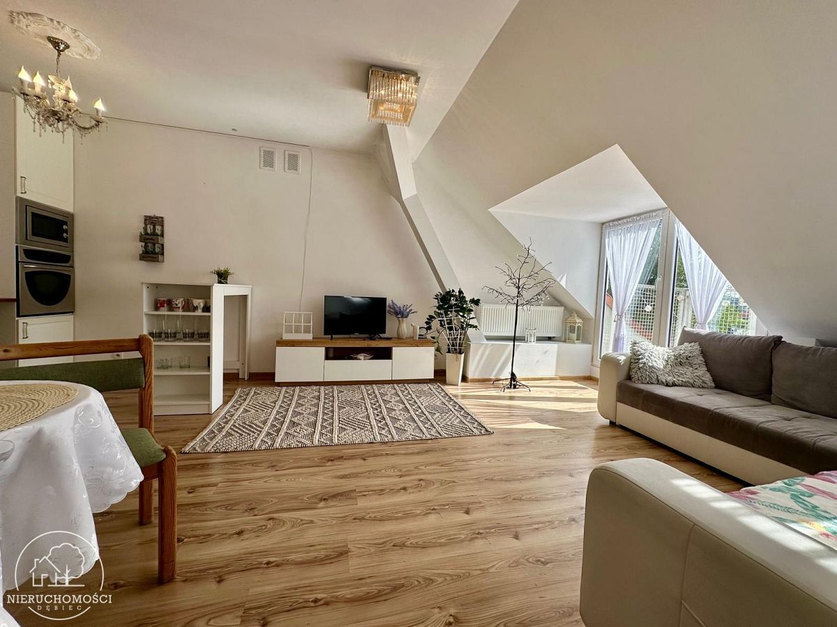 Mieszkanie o powierzchni po podłodze: ok. 55 m2, użytkowej: 43,5 m2 (ze względu na skosy).