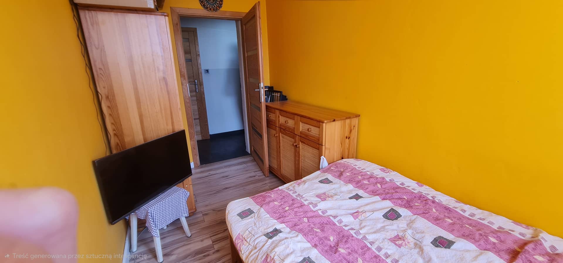 na podłogach płytki oraz panele