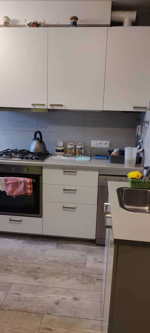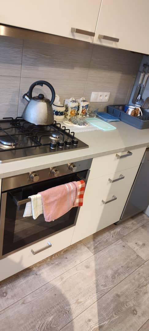 Kuchnia jest nowa i w pełni wyposażona w sprzęt AGD, który wraz z meblami pozostaje w mieszkaniu, co czyni ofertę gotową do wprowadzenia bez dodatkowych nakładów.