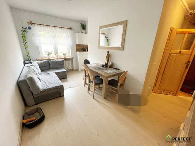 Biuro Nieruchomości Perfect oferuje na sprzedaż 2- pokojowe bezczynszowe mieszkanie usytuowane na wysokim parterze, z bezpośrednim wyjściem na ogródek, położone w Gminie Podgórzyn, w niewielki