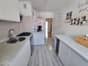 Zabudowa kuchenna wyposażona w kuchenkę gazową, piekarnik, zmywarkę, oraz kuchenkę mikrofalową.