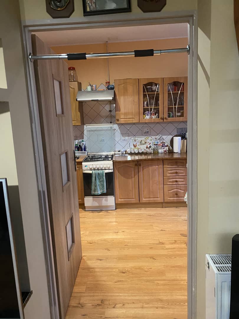 Część kuchenna umeblowana: zabudowa wraz z kuchenką gazowo-elektryczna.