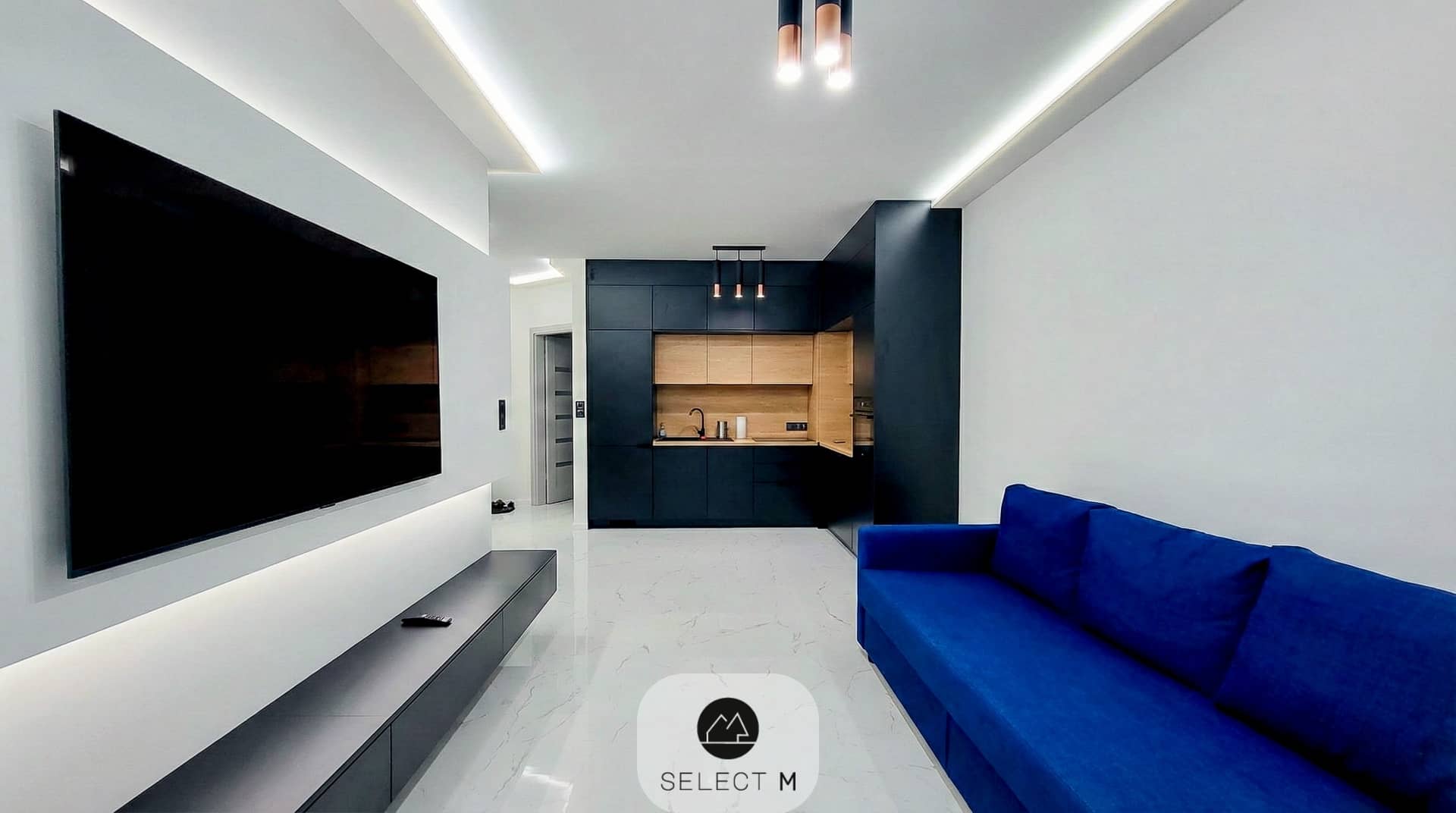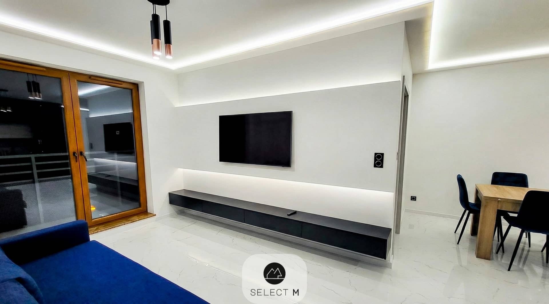 • pełne wyposażenie: w kuchni i łazience sprzęt gotowy do pracy (zmywarka, duża lodówka, płyta indukcyjna, piekarnik, pralka). Nie tracisz czasu i pieniędzy na meblowanie kuchni;