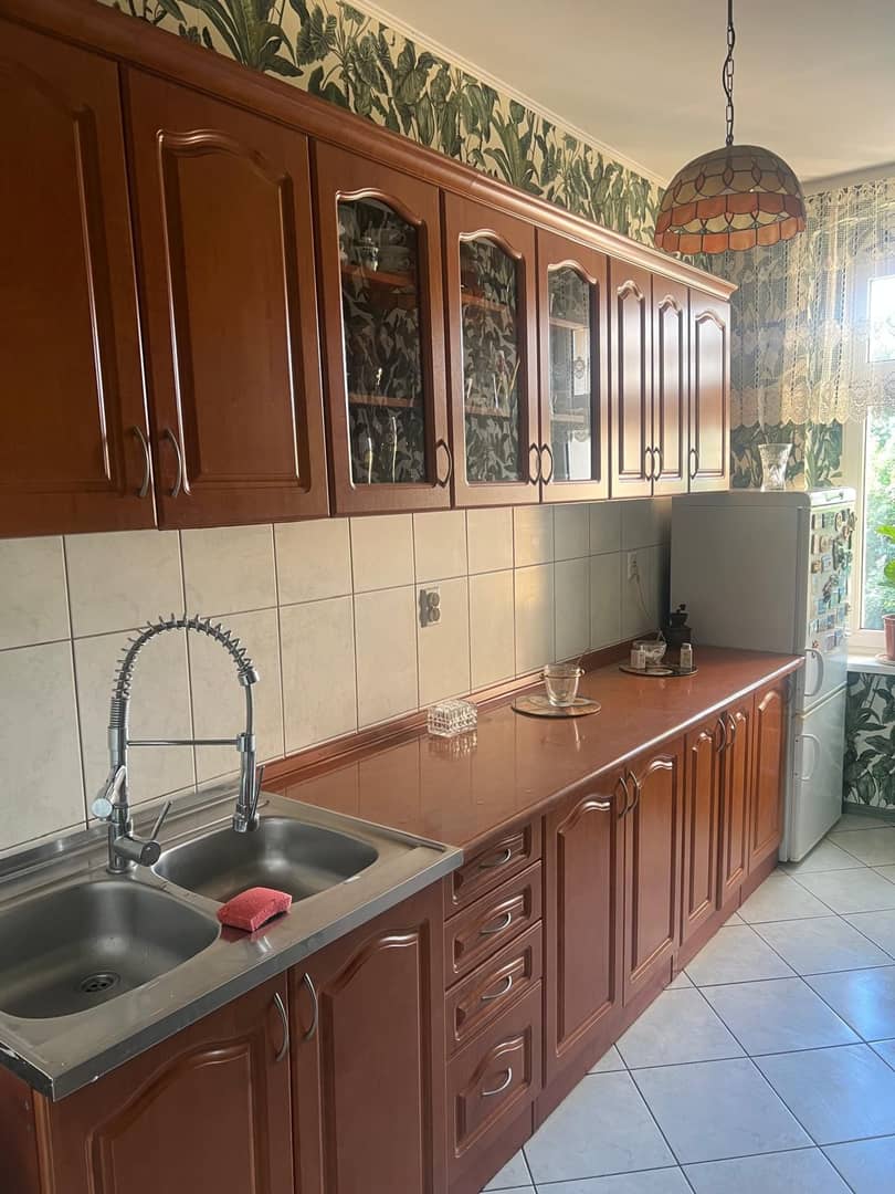 Mieszkanie zadbane w dobrym stanie technicznym z zachowanymi ozdobnymi piecami kaflowymi, oryginalną drewnianą stolarką drzwiową. W pokojach na ścianach częściowo tapety, na podłogach panele, w pozostałych pomieszczeniach płytki. Okna PCV, wymieniona instalacja elektryczna. Ogrzewanie gazowe, piec dwufunkcyjny. Do mieszkania przynależy piwnica, wyznaczone miejsce postojowe za budynkiem oraz ogródek działkowy z altanką i ładnymi nasadzeniami w zasięgu 100 metrów od kamienicy.
