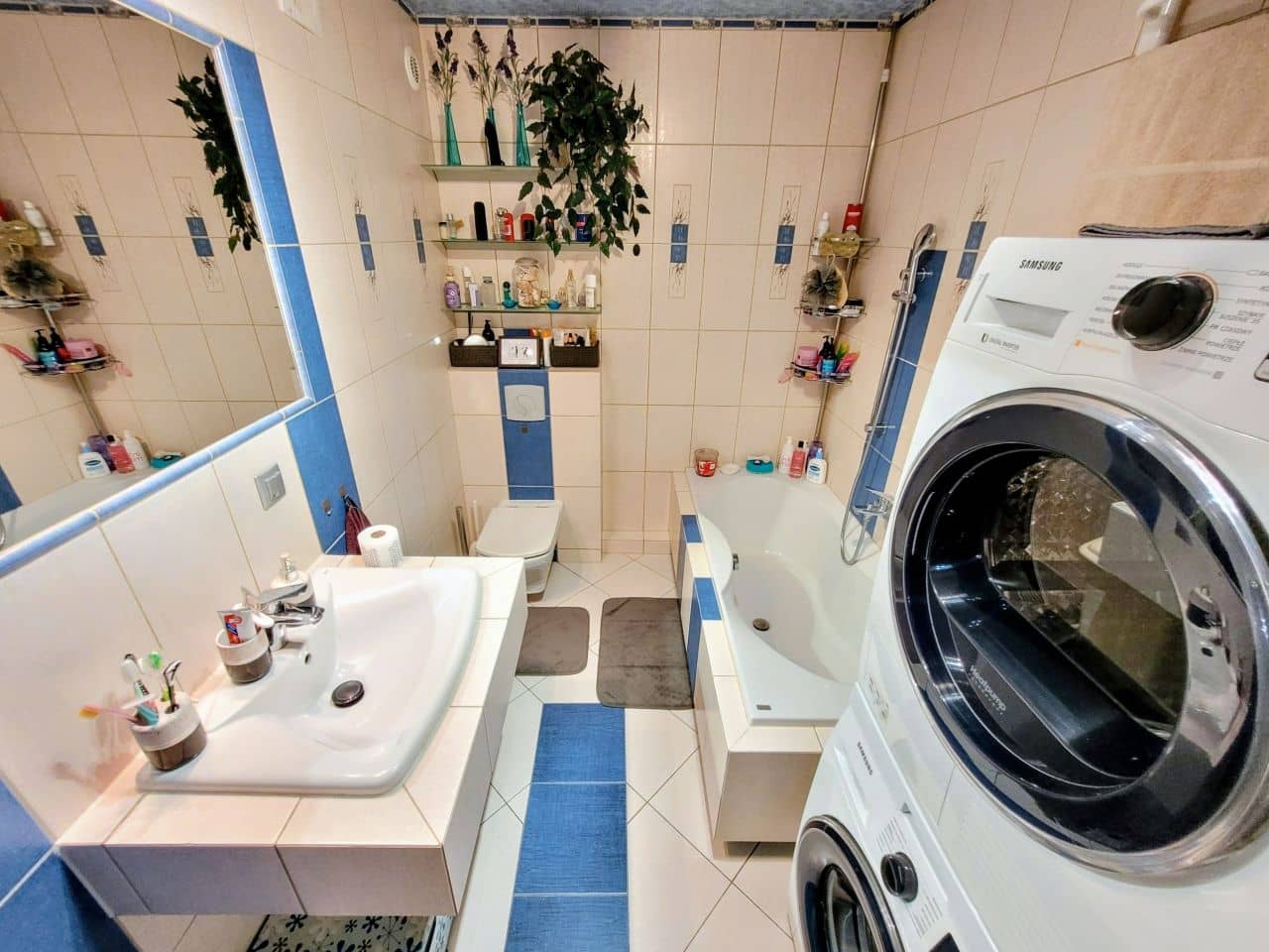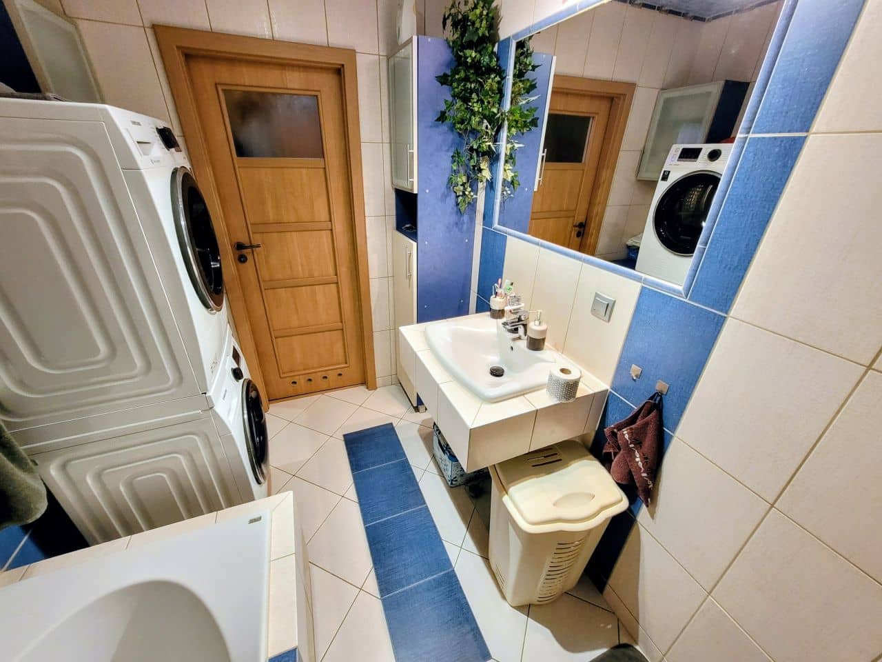 -w cenie pozostaje prawie całe umeblowanie prócz mebli w pokoju na górze i komody, co oznacza że prócz mebli pozostają również sprzęty AGD, w tym: kilkumiesięczna lodówka i zmywarka będące jeszcze na gwarancji oraz miedzy innymi pralka i suszarka widoczna na zdjęciach