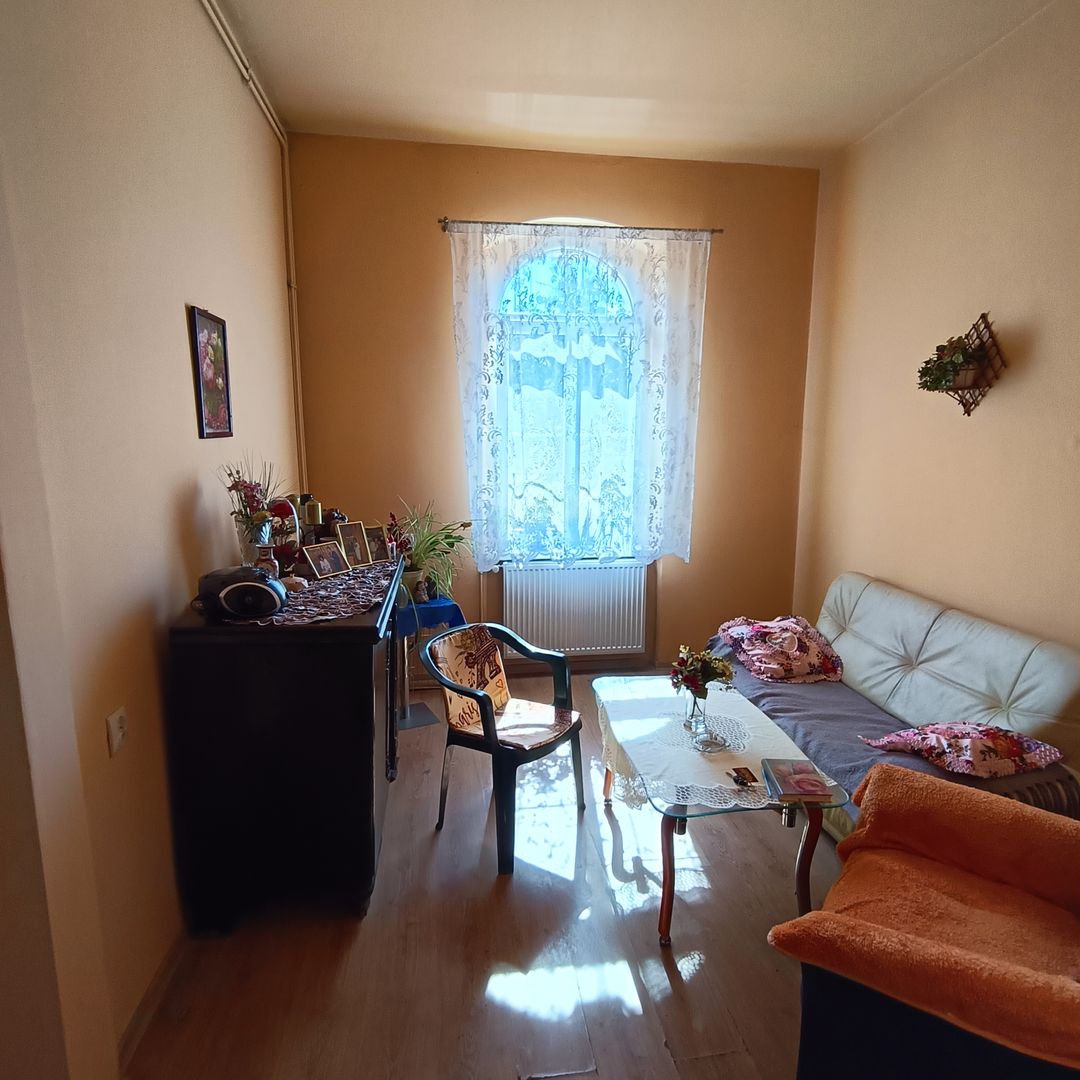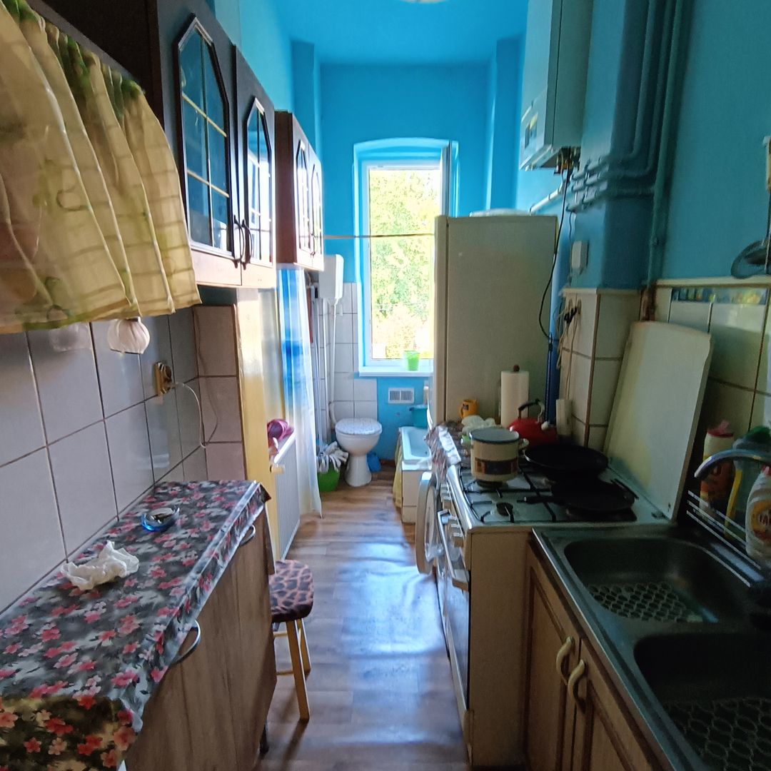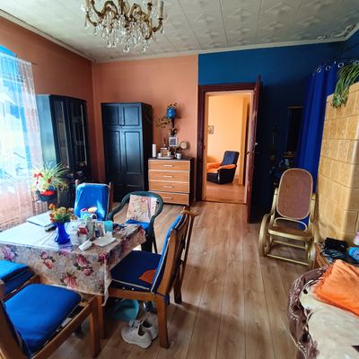 Układ: 2 pokoje, po prawej stronie korytarza, kuchnia i wydzielone miejsce na łazienkę, po lewej stronie korytarza, który jest częścią wspólną, z wejściem do mieszkania sąsiada. ( Cześć kuchenna może funkcjonować jako pom. gospodarcze, a prawą stronę, można przerobić na 2 pokoje, kuchnie i łazienkę)