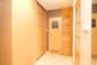 Budynek po termomodernizacji, zarządzany przez Spółdzielnię Mieszkaniową JSM – klatka schodowa po remoncie, budynek po termomodernizacji.