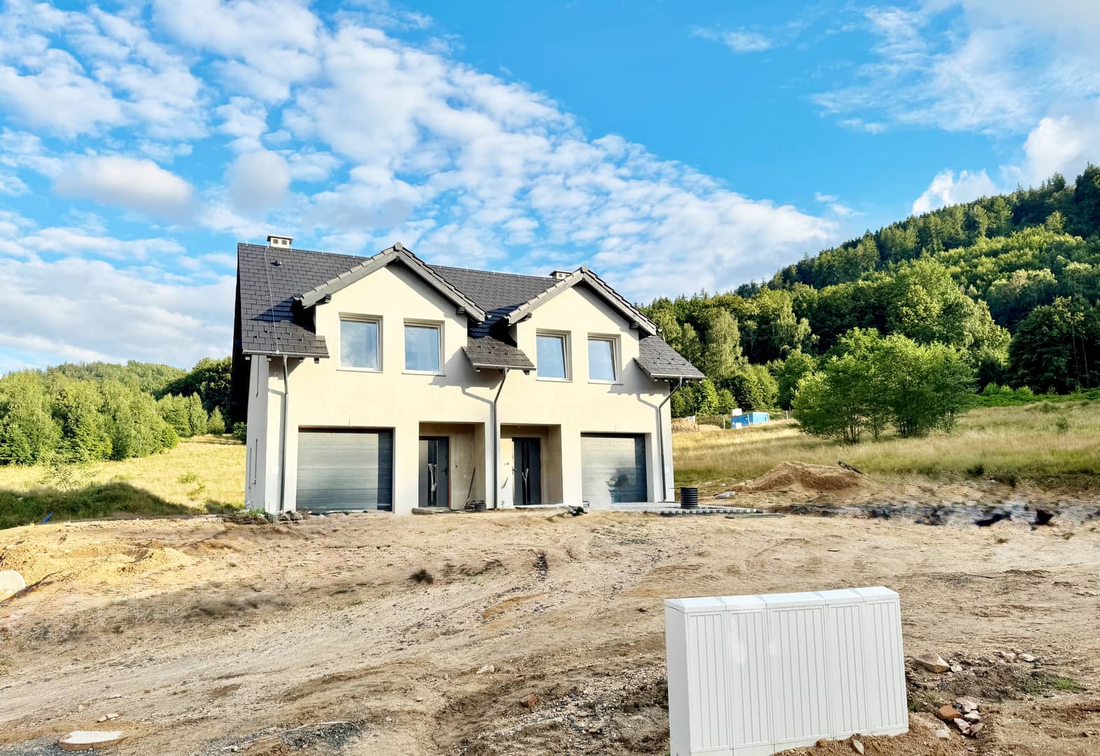 Budynek z 2024 roku, posadowiony na działce ok. 1200m2. Do każdego lokalu będzie przynależał ogródek o pow. ok. 600m2.