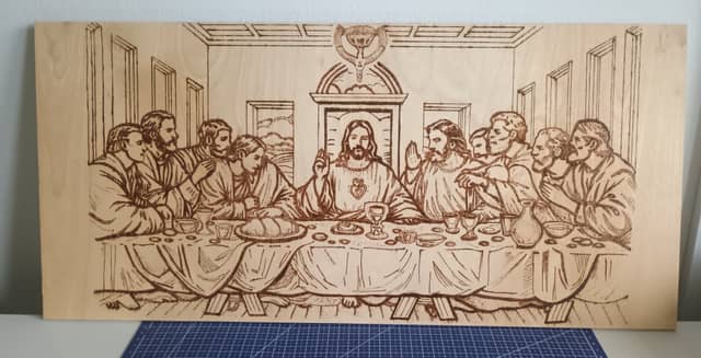 Witam na sprzedaż mam rękodzieło na drewnie Ostatnia Wieczerza , pirografia , rozmiar 63cm x 30cm , lakierowane. Cena 100zł odbiór osobisty. Zapraszam