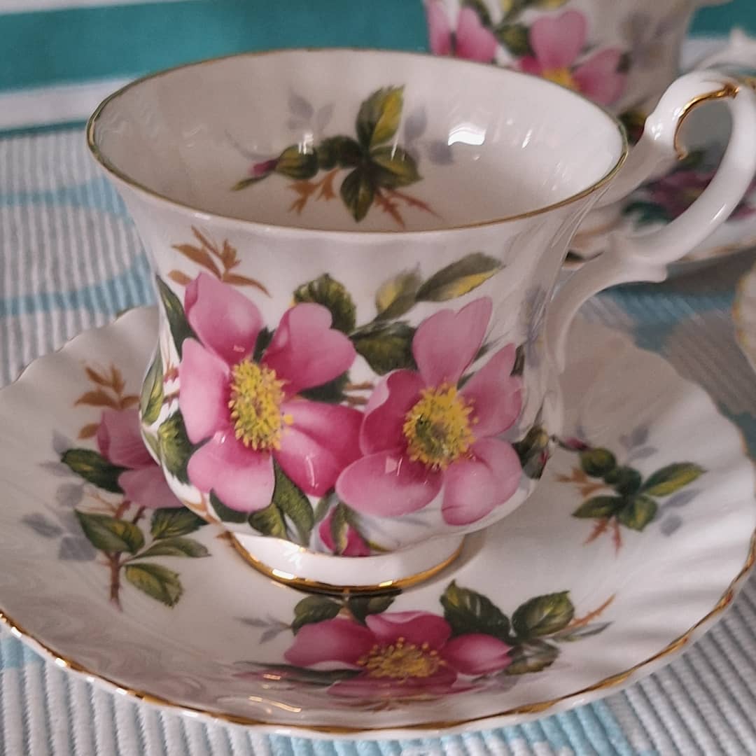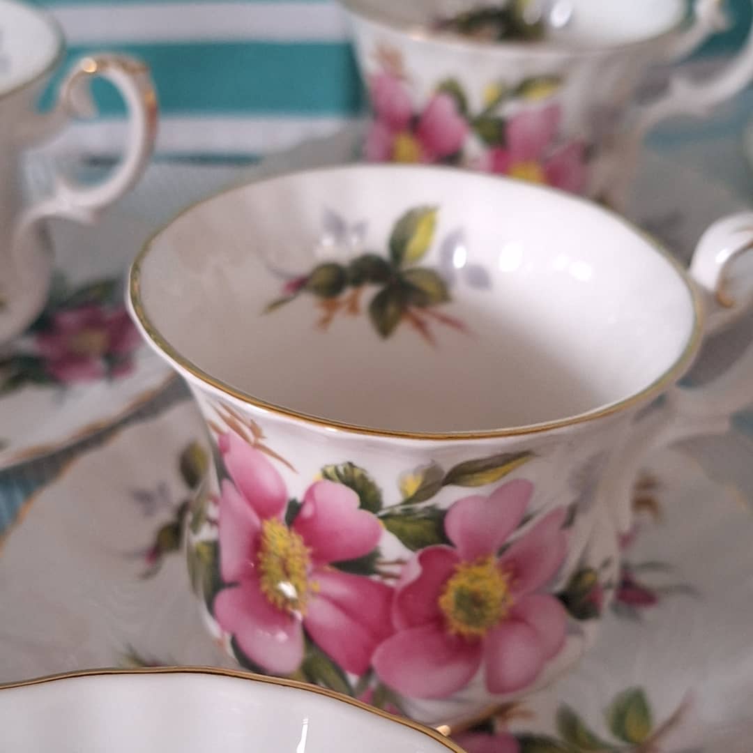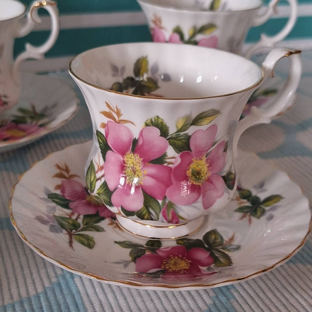 Serwis porcelanowy Royal Albert z serii Prairie Rose ,w skład wchodzi 6 filiżanek ze spodkami, talerzyki deserowe, cukierniczka I patera. Możliwy dowóz lub wysyłka. Cena za komplet 390 zł.