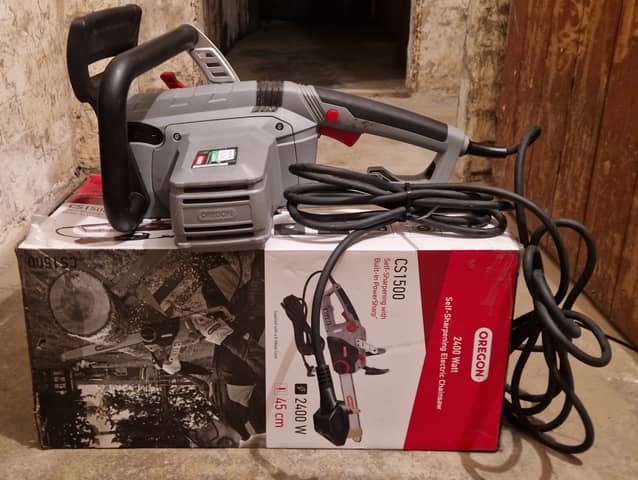 Piła Łańcuchowa elektryczna. Stan bdb. Firma Oregon. Wejście UK. Urządzenie sprawne ale niekompletne. Samo urządzenie + opakowanie. Cena 300zł