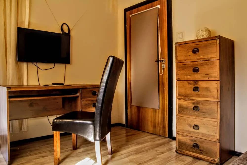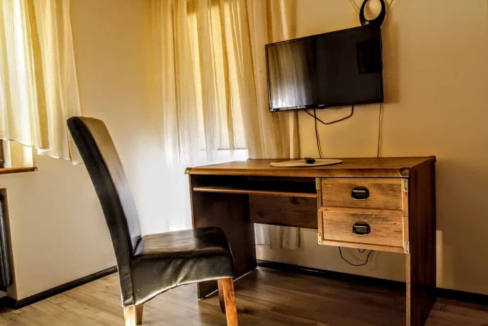 Pokój jest **w pełni umeblowany** – znajduje się w nim wygodna sofa, biurko z krzesłem, szafa oraz komoda. Przestrzeń dobrze doświetlona, funkcjonalna i gotowa do zamieszkania bez dodatkowych nakładów.