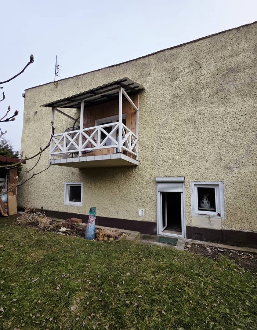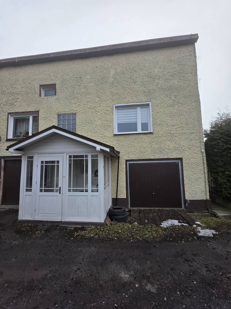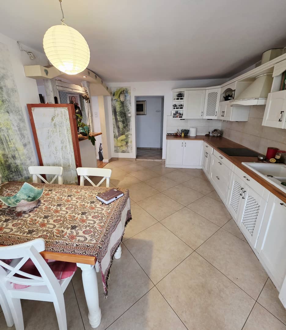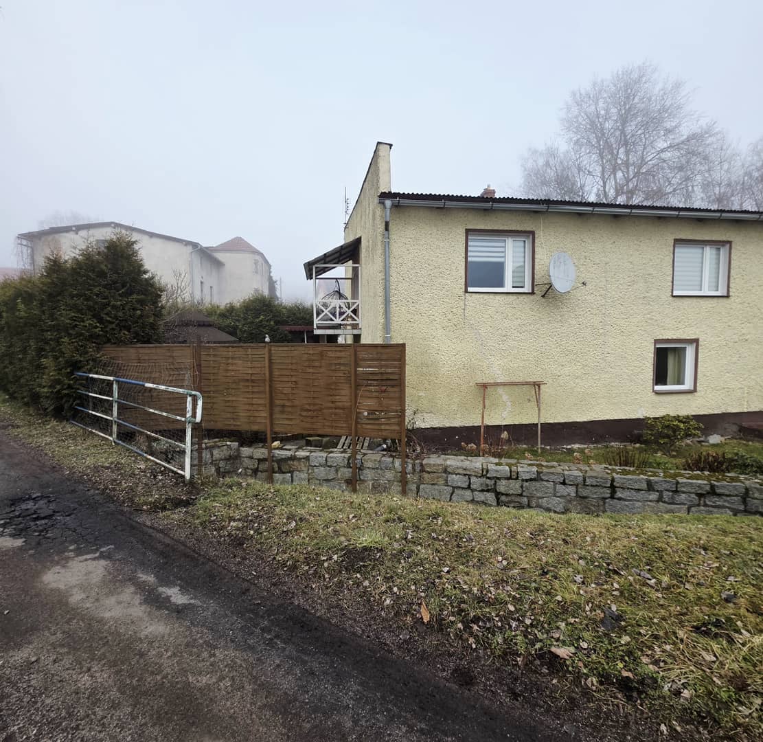 Połowa domu w podziale pionowym, położona na Pogórzu Kaczawskim w gminie Lwówek Sląski. Usytuowany na działce o powierzchni 2400 m2 do użytku z sąsiadem (każdy umownie korzysta z zagospodarowanej części) o powierzchni całkowitej 150 m2, na krórą składa się, w parterze garaż z kotłownią, spiżarnia, dwa pokoje, w tym jeden z wyjściem do prywatnego ogrodu z altanką, połączone schodami z pierwszym piętrem, jak również klatka schodowa od ganku budynku, jako wejscie główne. Na piętrze znajduje się korytarz, ładna widna kuchnia z balkonem, wyposażona i umeblowana, połączona z salonem, 2 sypialnie oraz łazienka. Mieszkanie po remoncie, wymienione wszystkie instalacje. Okna pcv, ściany gładzie, na podłogach panele, deski oraz płytki. Ogrzewanie piecem na paliwo stałe. Do zamieszkania bez dodatkowych nakładów finansowych. Teren w części zagospodarowany, własne miejsce parkingowe. Dodatkowo w cenie działka budowlana 900 m2, granicząca z terenem na którym stoi dom. Bardzo atrakcyjna i spokojna okolica, dużo terenów zielonych. Do Lwówka Śląskiego 7 km, do Płatnej Dolnej również 7 km. Atrakcyjna cena 429 000 zł do negocjacji, zapraszam na prezentację Nieruchomości dostępnej tylko w Naszym biurze Nieruchomości Rychlewski