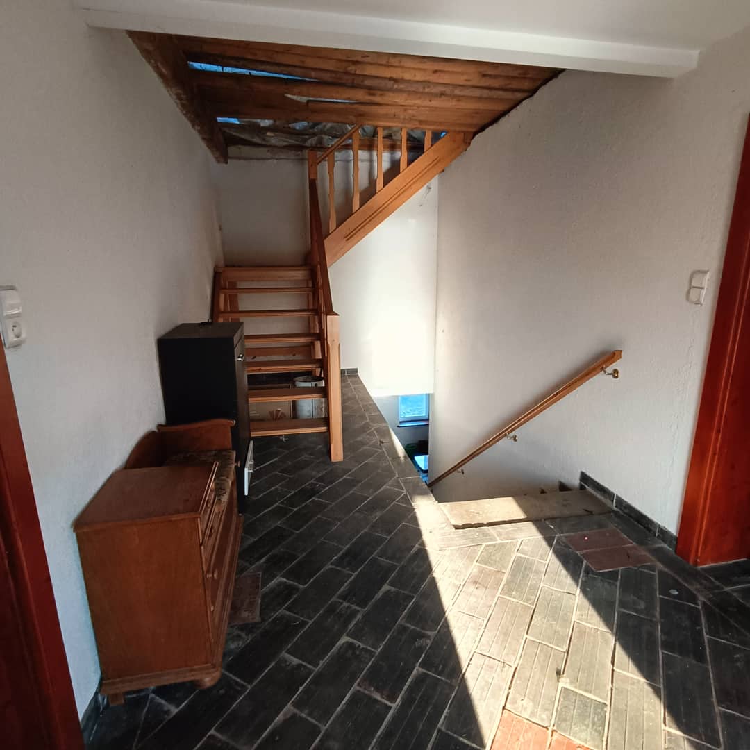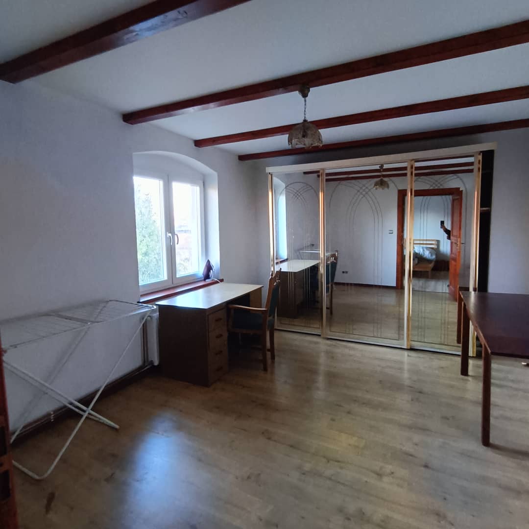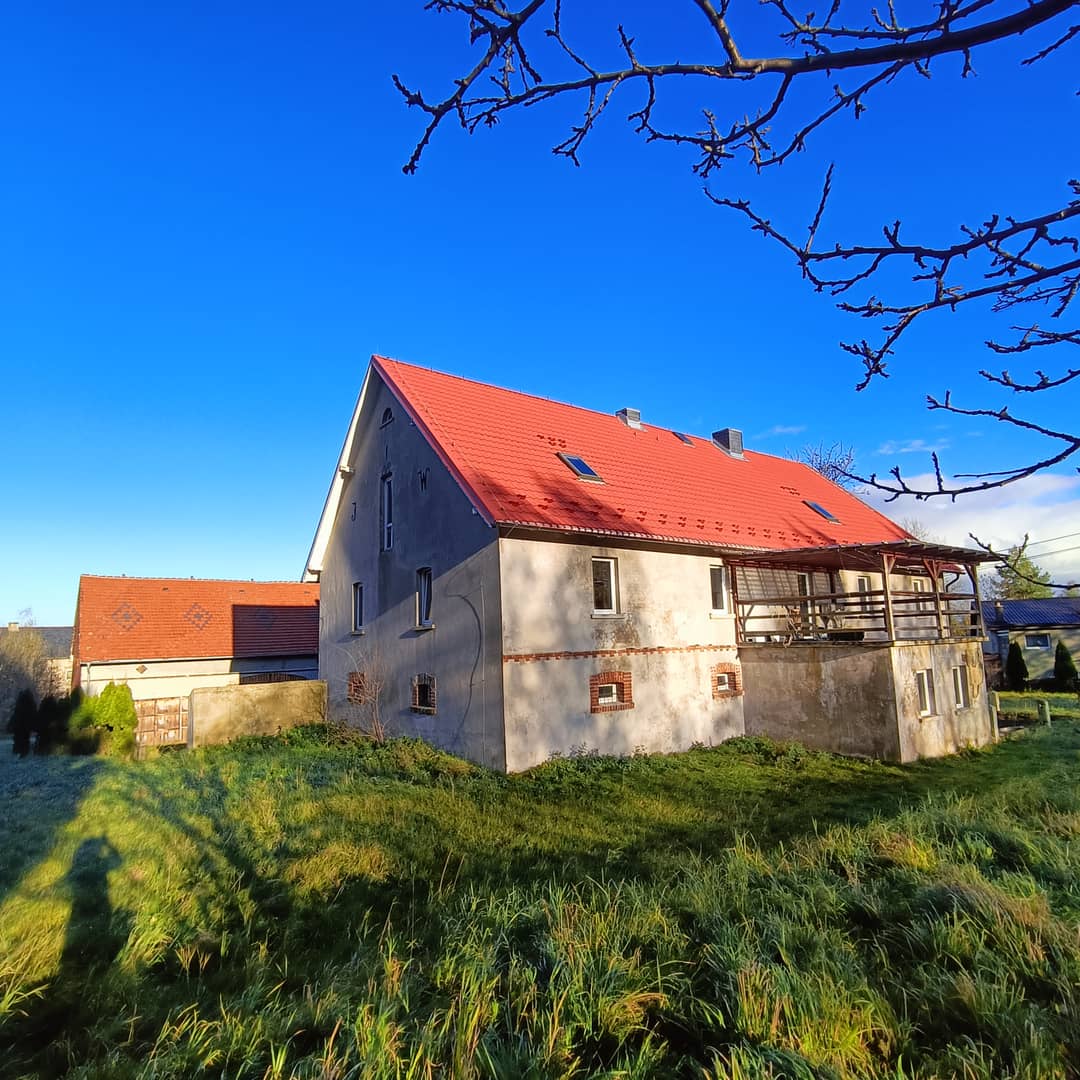 Połowa domu w podziale pionowym, położona na Pogórzu Kaczawskim w gminie Lwówek Sląski. Usytuowany na działce o powierzchni 2400 m2 do użytku z sąsiadem (każdy umownie korzysta z zagospodaro