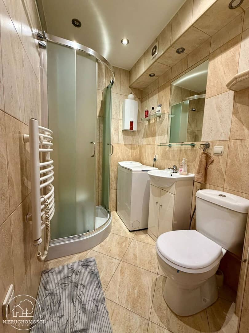 - łazienka z kabiną prysznicową i wc.