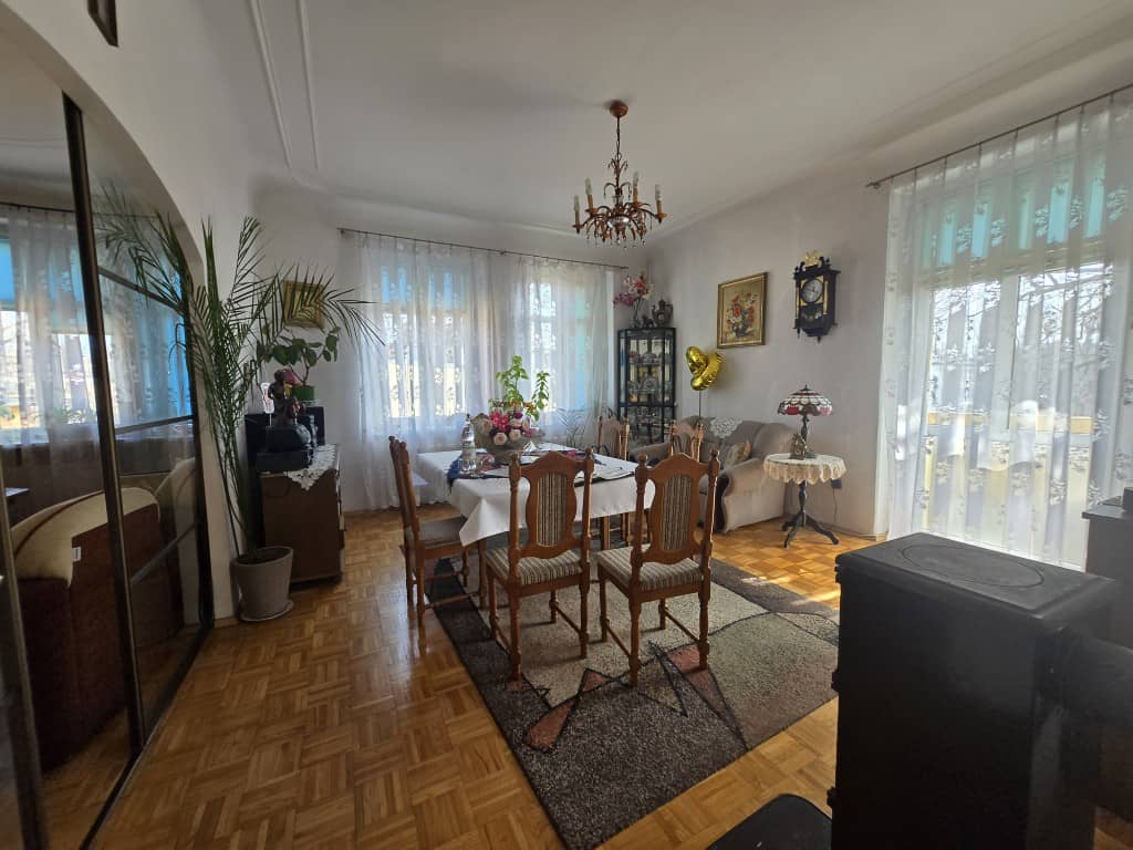 Zachowana oryginalna stolarka drzwiowa, na podłogach parkiet, panele i płytki. Czynsz do wspólnoty 400 zł.