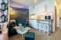- przytulny salon z częścią wypoczynkową i aneksem kuchennym, z którego rozpościera się zachwycający widok na góry