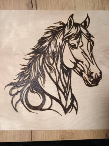 Witam na sprzedaż mam rękodzieło , obraz Konia wypalany pirografem. Format A2 zabezpieczony lakierem akrylowym. Cena 100zł odbiór osobisty.