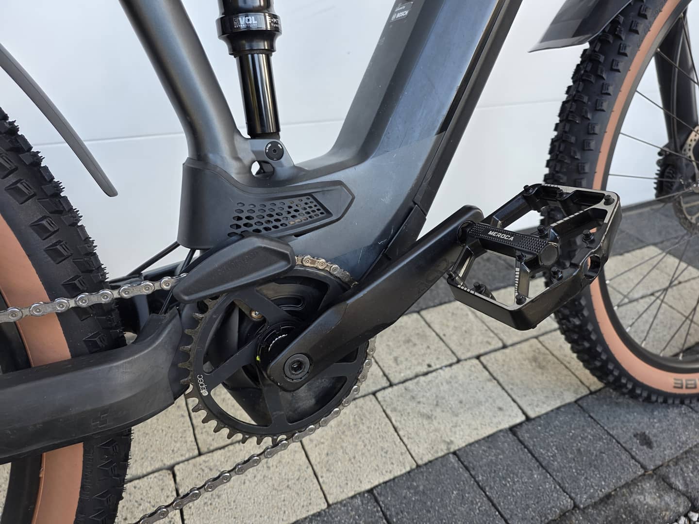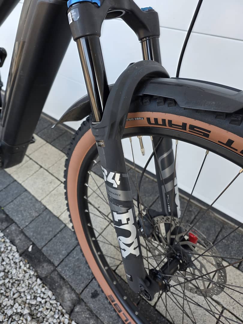 12-biegowa przekładnia Shimano DEORE XT z zawieszeniem Fox i napędem elektrycznym Bosch: komfort roweru hybrydowego z pełnym zawieszeniem.