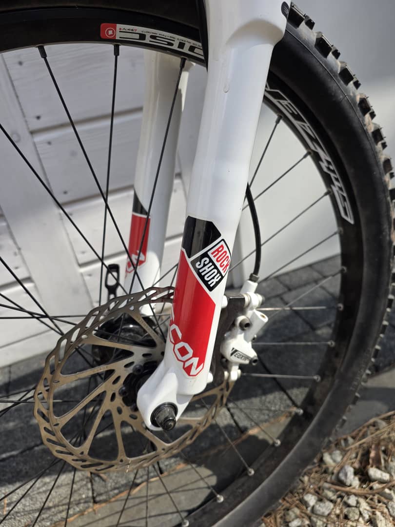 - amortyzator orginał ROCKSHOX RECON SILVER TK na sztywnej piaście , powietrzny z regulacją i blokadą skoku