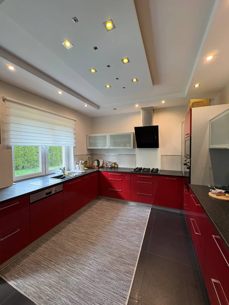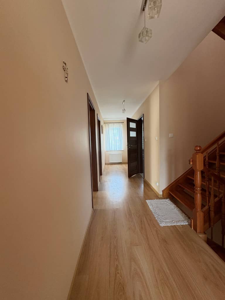 STANDARD: Dom z 2003 r. w bardzo dobrym stanie technicznym. Dach kryty dachówką. Podłogi drewniane, okna drewniane i pcv, na parterze rolety antywłamaniowe, schody wewnętrzne drewniane. Ogrzewanie gazowe. Dom ogrodzony, brama wjazdowa na pilota.