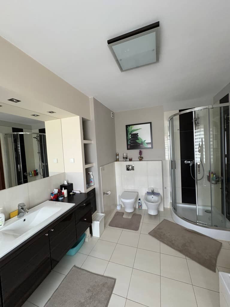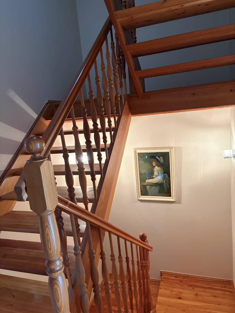 Piętro to: 3 sypialnie w tym jedna z wyjściem na balkon, gabinet z balkonem, garderoba oraz przestronny pokój kąpielowy z wanną i kabiną prysznicową.