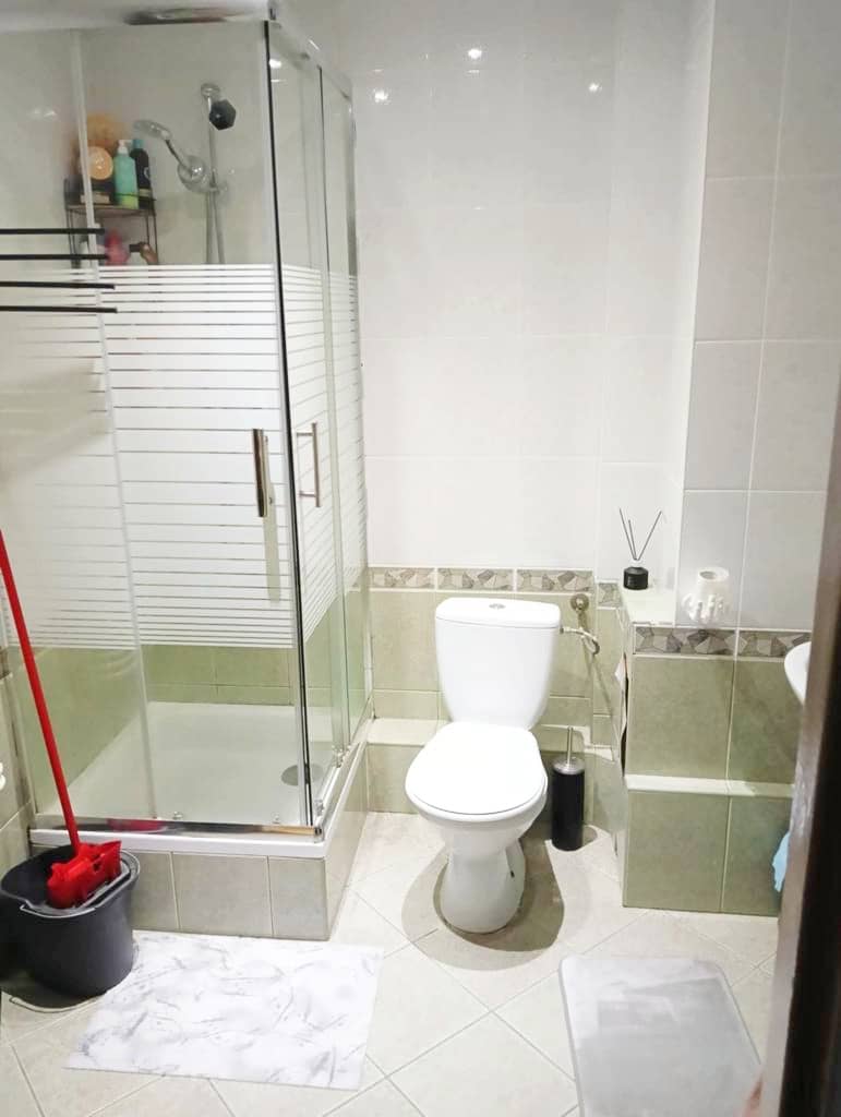 - łazienka z toaletą i kabiną prysznicową
