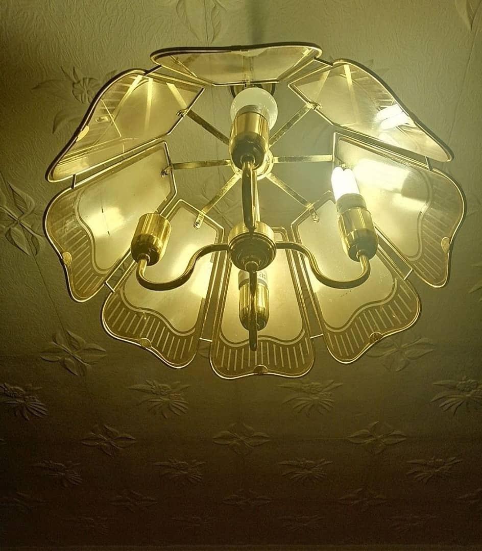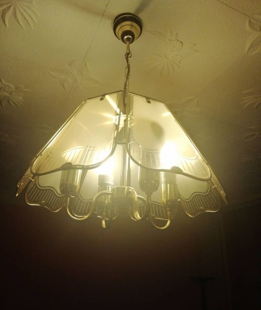 - żyrandol przeszklony w kolorze złotym na 4 żarówki - 100zł