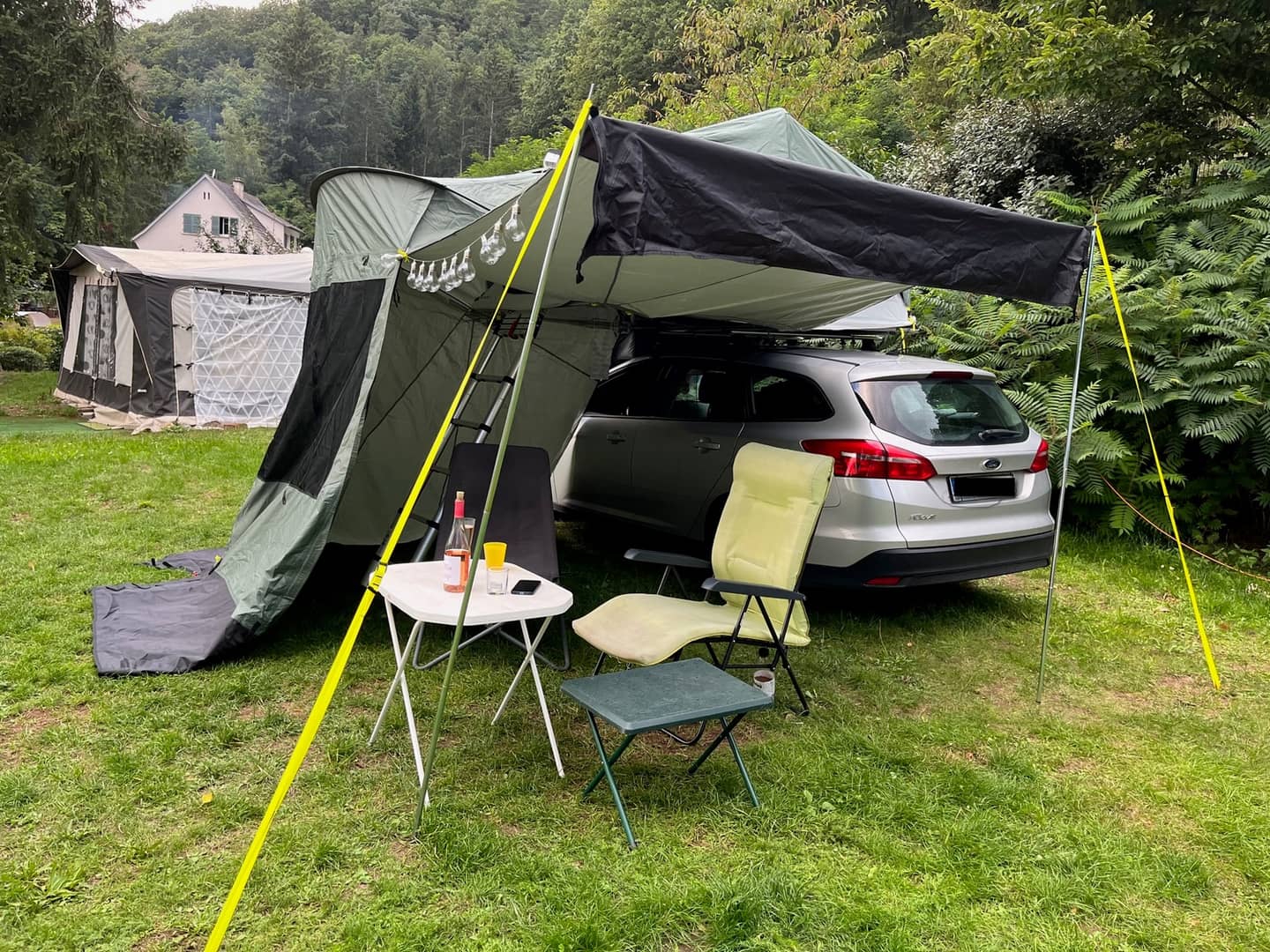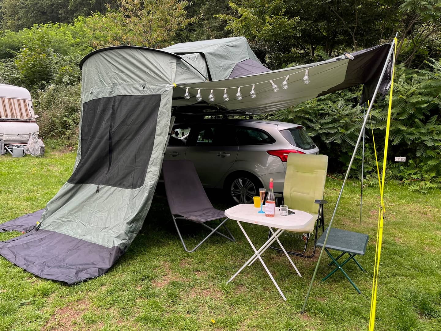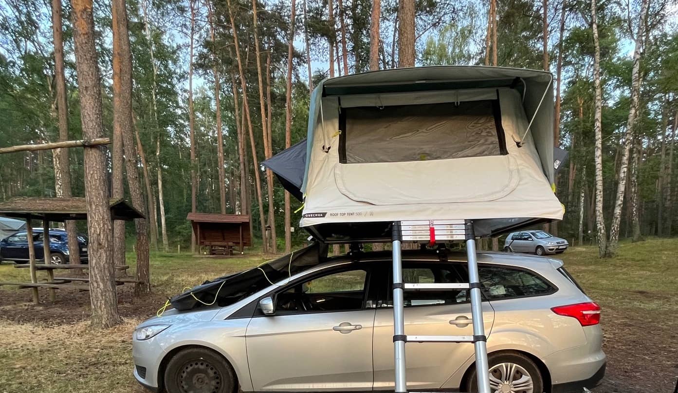Sprzedam namiot dachowy z dedykowanym przedsionkiem firmy Quechua.