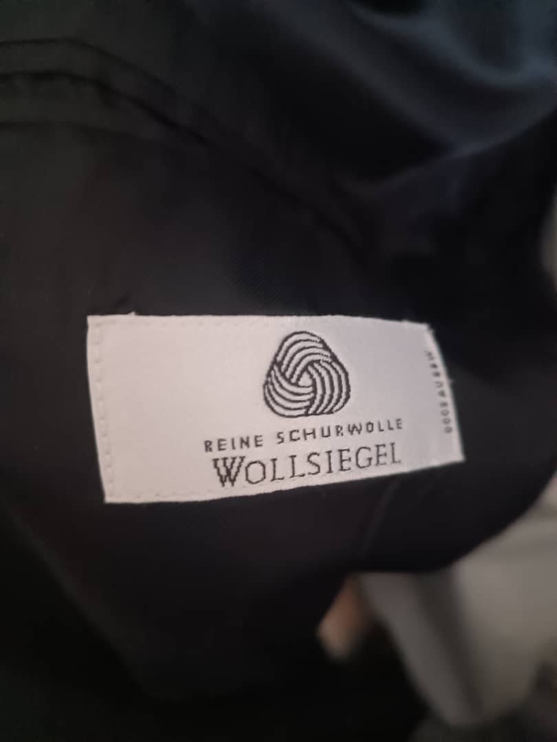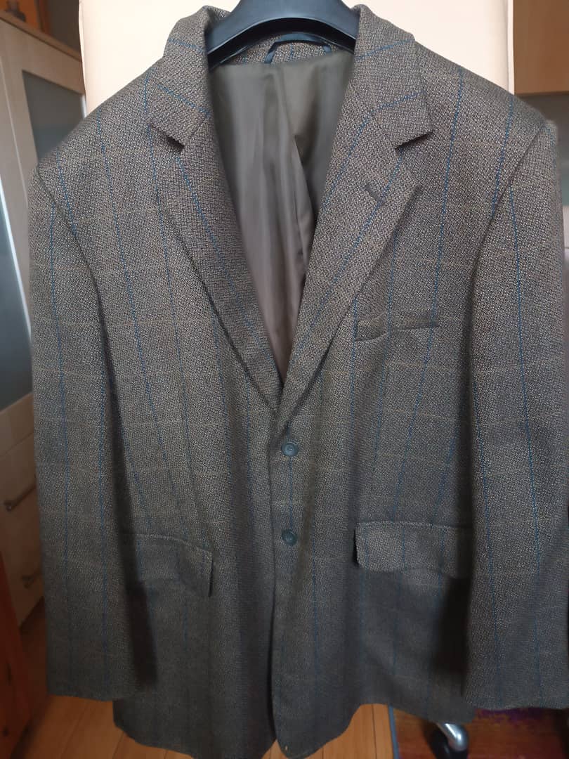 1) czarny smoking, 100% wełny, podszewka wiskoza, uszyty w Wiedniu. Obwód pasa spodni max 104 cm, tors 100 cm - 300 zł