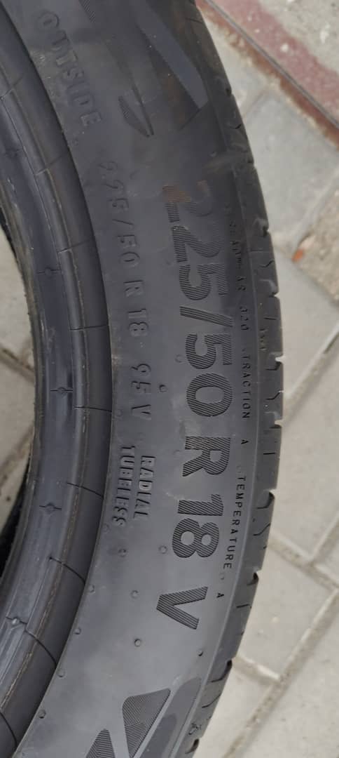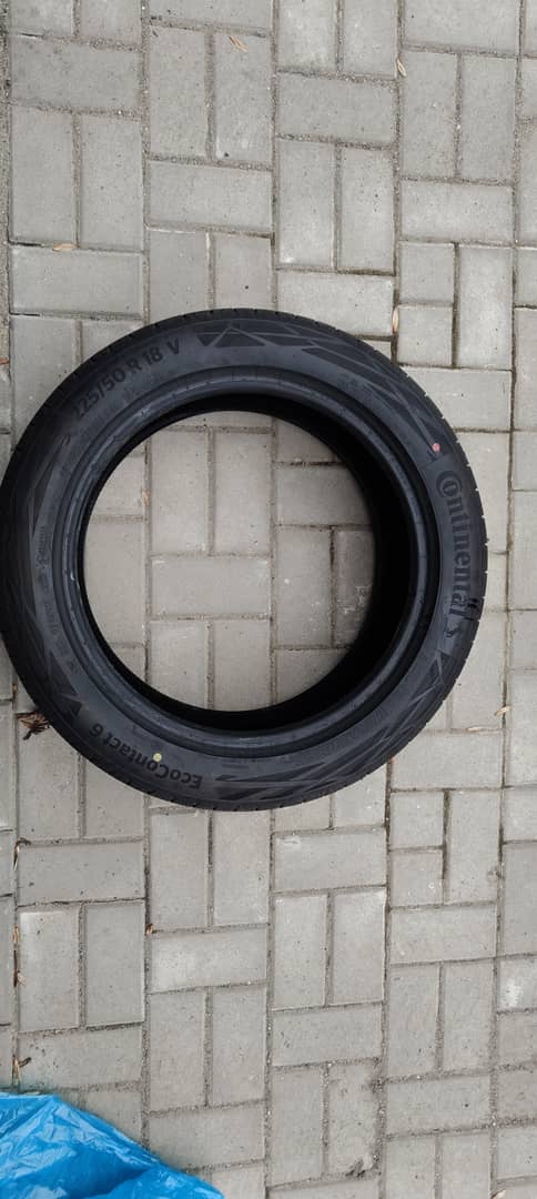 Sprzedam letnie opony Continental EcoContact 6. Rozmiar 225/50 r18. Opony ściągnięte z nowego auta z przebiegiem 7 km.