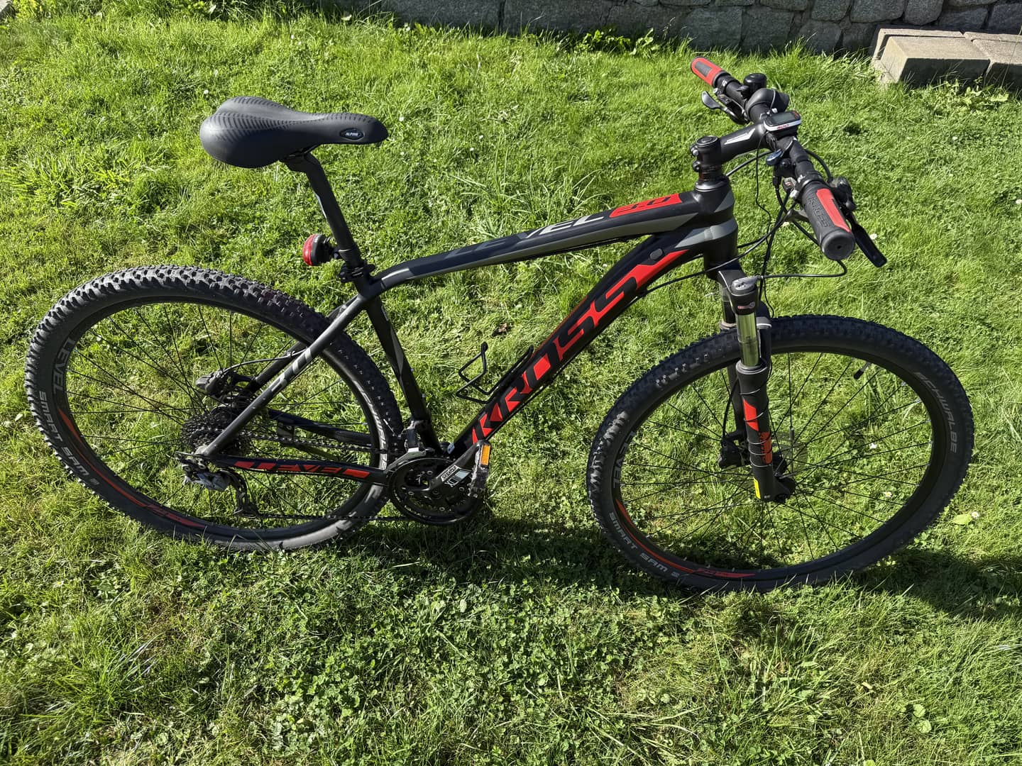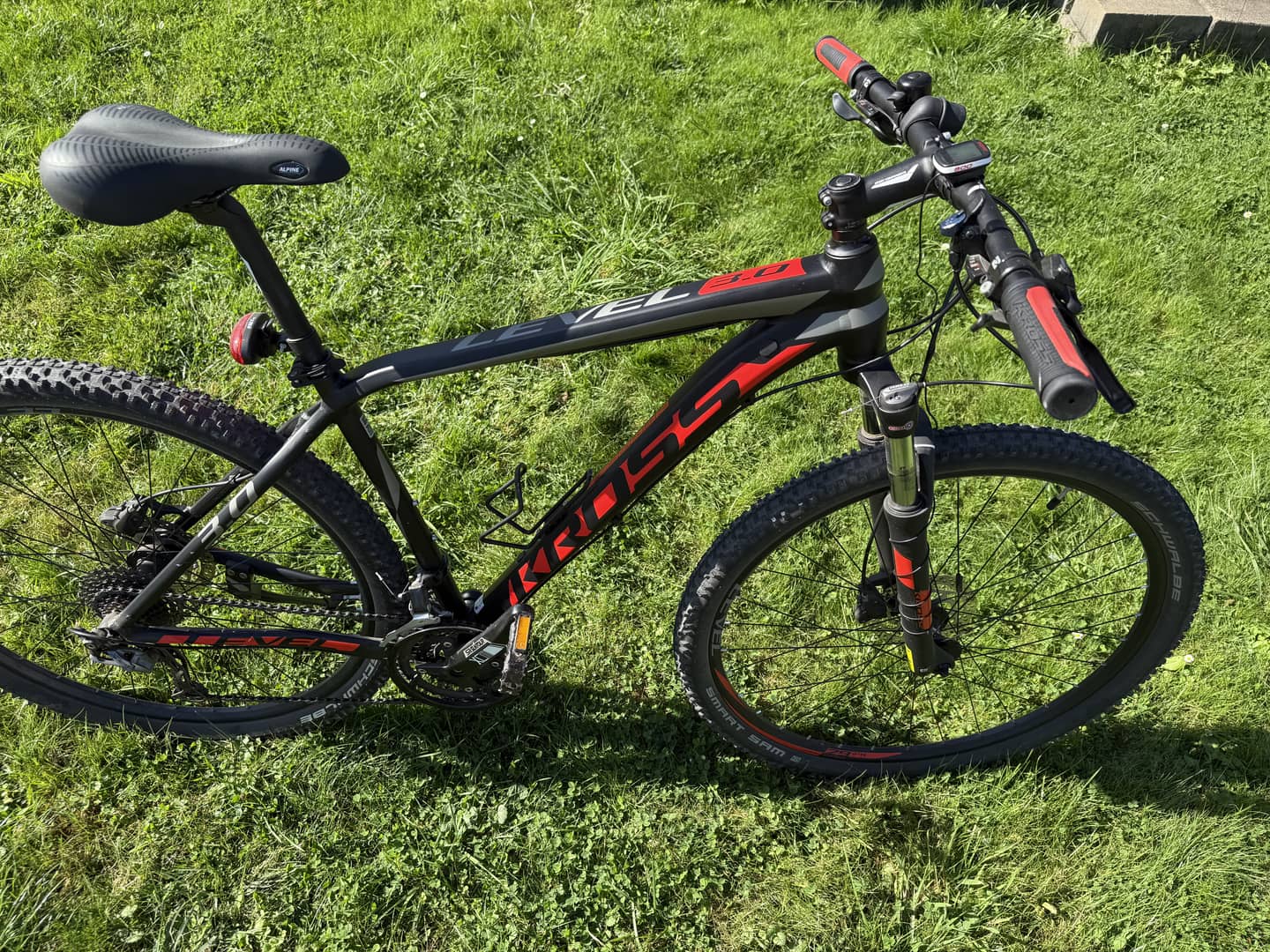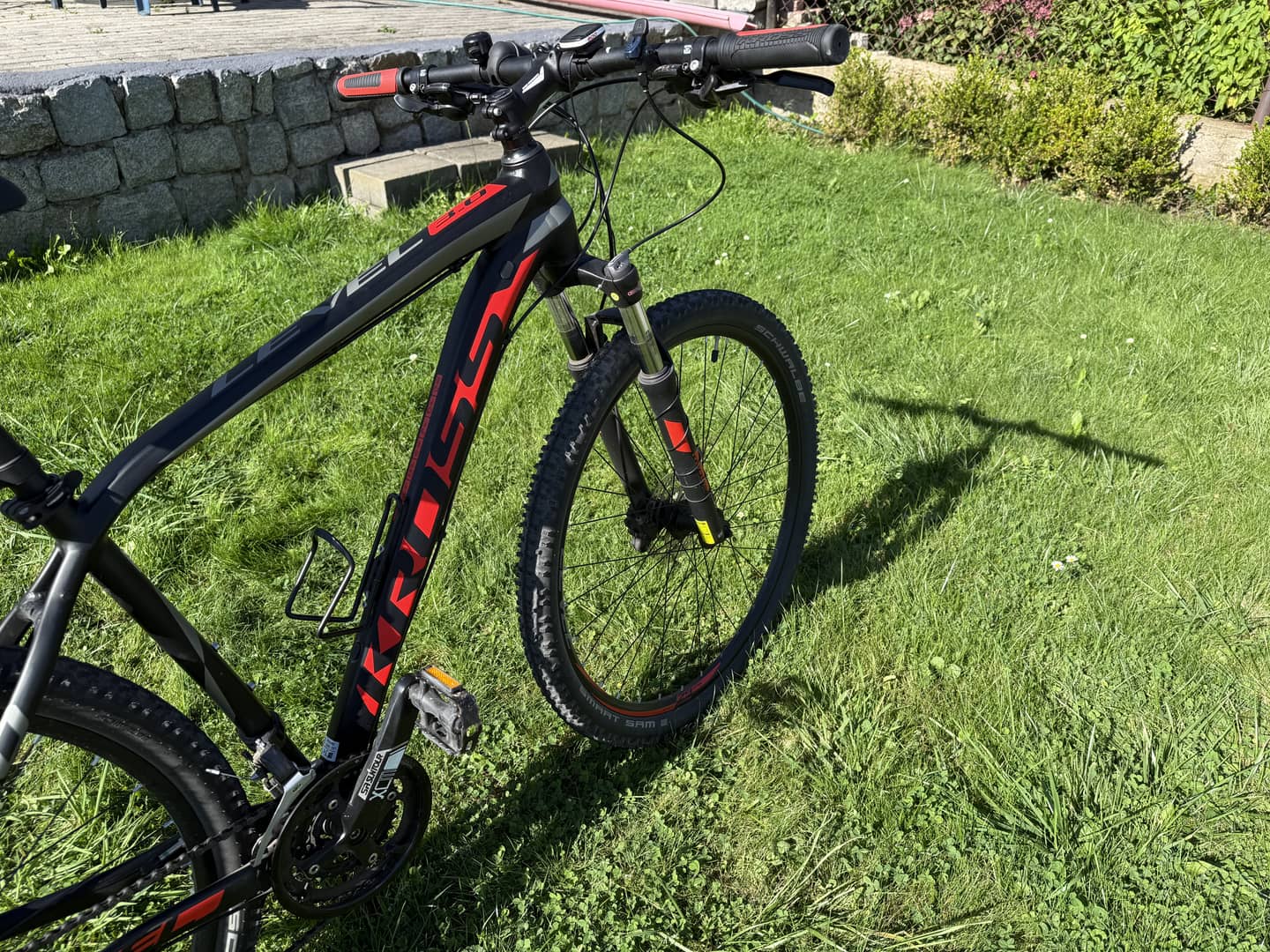 Sprzedam rower górski KROSS, rozmiar M, koła 29. Rower w bdb stanie, użytkowany sporadycznie do jazdy po asfalcie. W zestawie licznik, nóżka i kask.