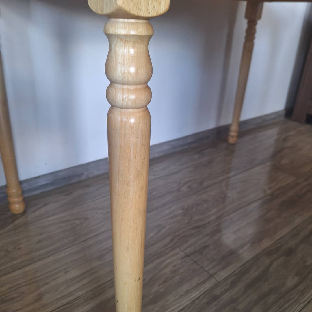 Stół drewniany jadalniany na toczonych nogach. Wymiary długość 120 cm, szerokość 74 cm, wysokość 74 cm. Możliwy transport, cena 380 zł.
