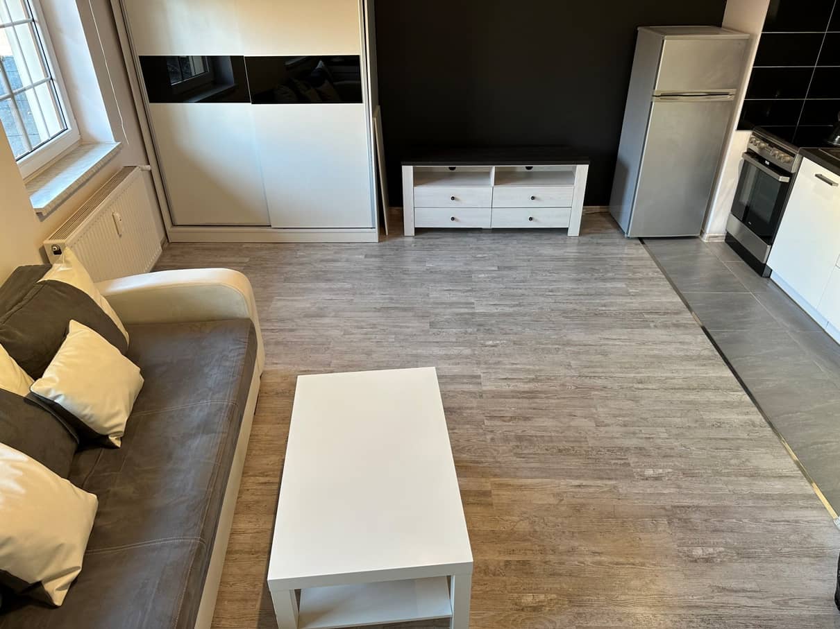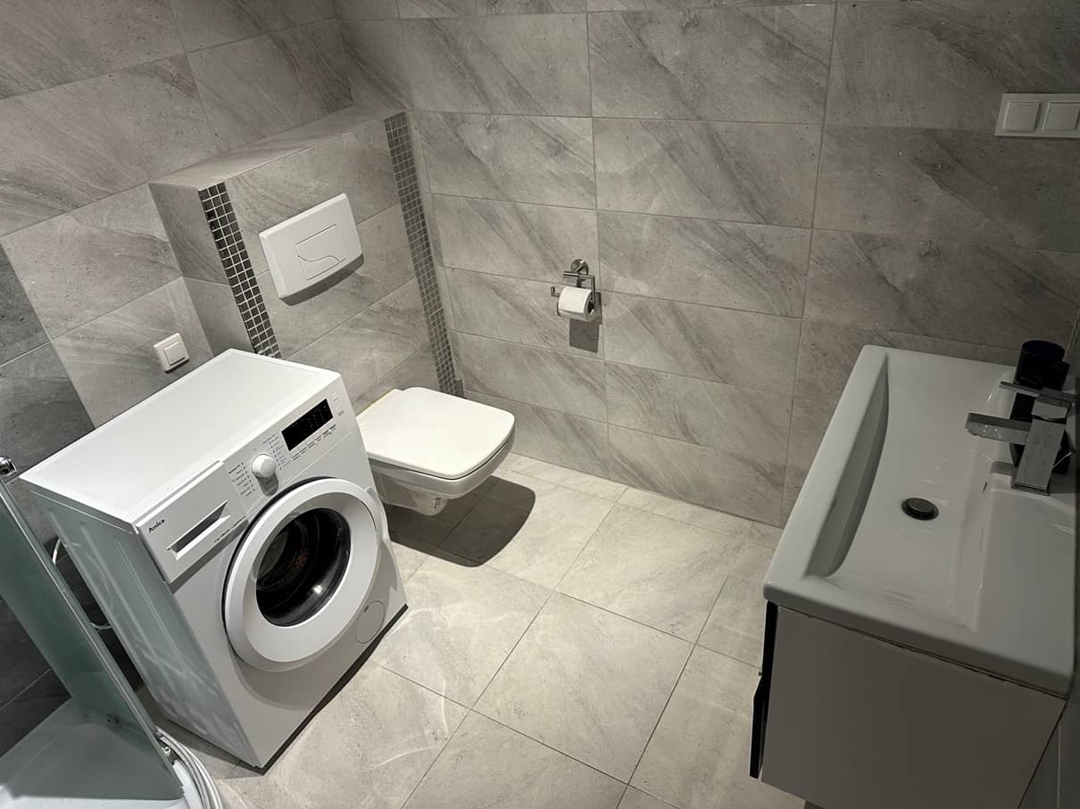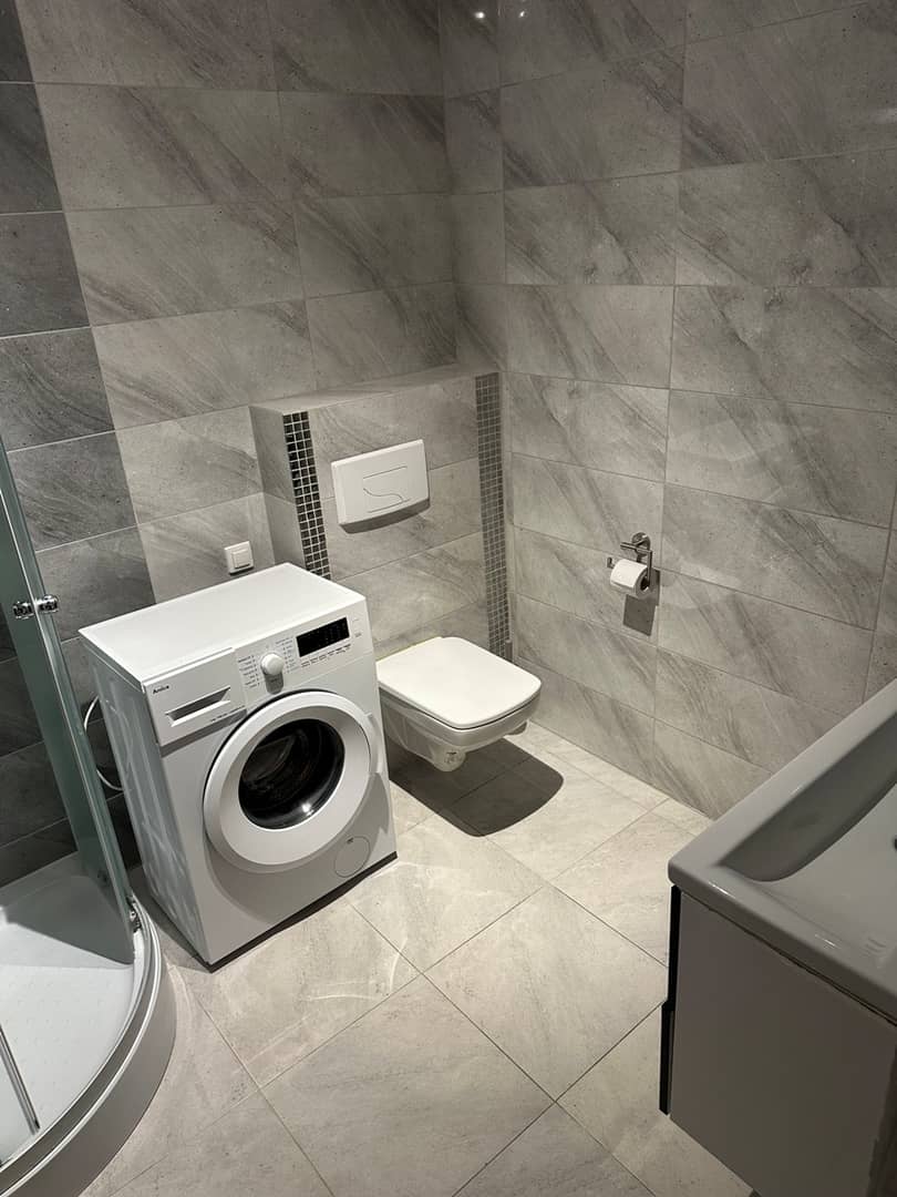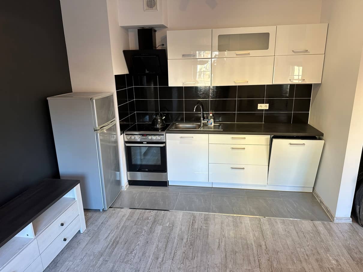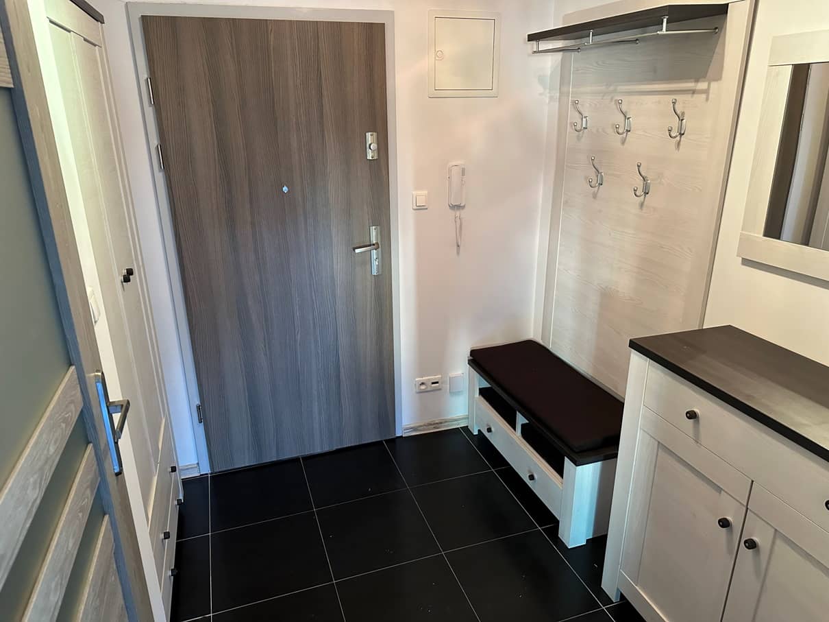 W cenie mieszkania kompletnie wyposażenie- meble w pokoju i przedpokoju, zabudowa kuchenna ze sprzętem AGD (płyta elektryczna, okap, piekarnik elektryczny, zmywarka, lodówka z zamrażarką, kompletnie wyposażona łazienka z pralką.