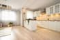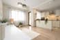 przestronny salon z aneksem kuchennym wyposażonym w funkcjonalną wyspę oraz posiadający wyjście na słoneczny taras od strony południowej,
